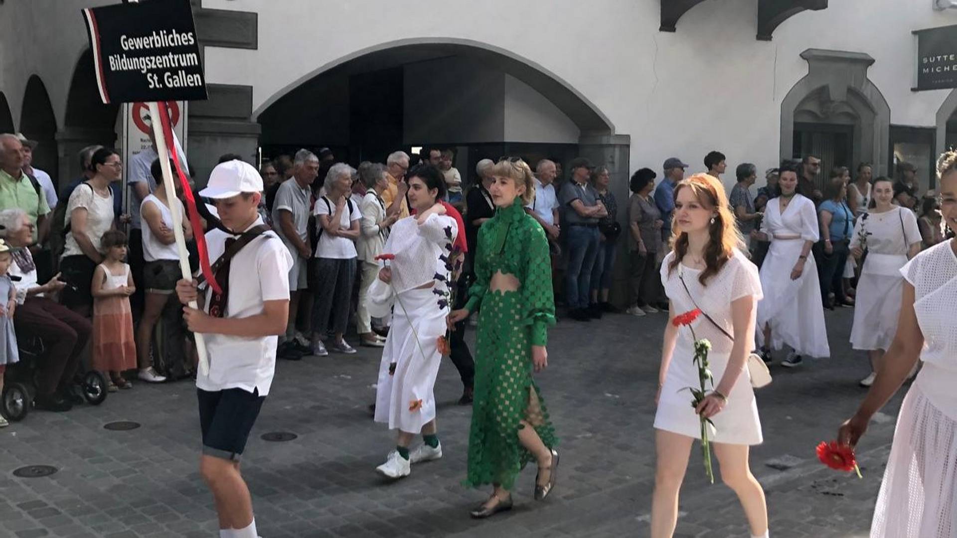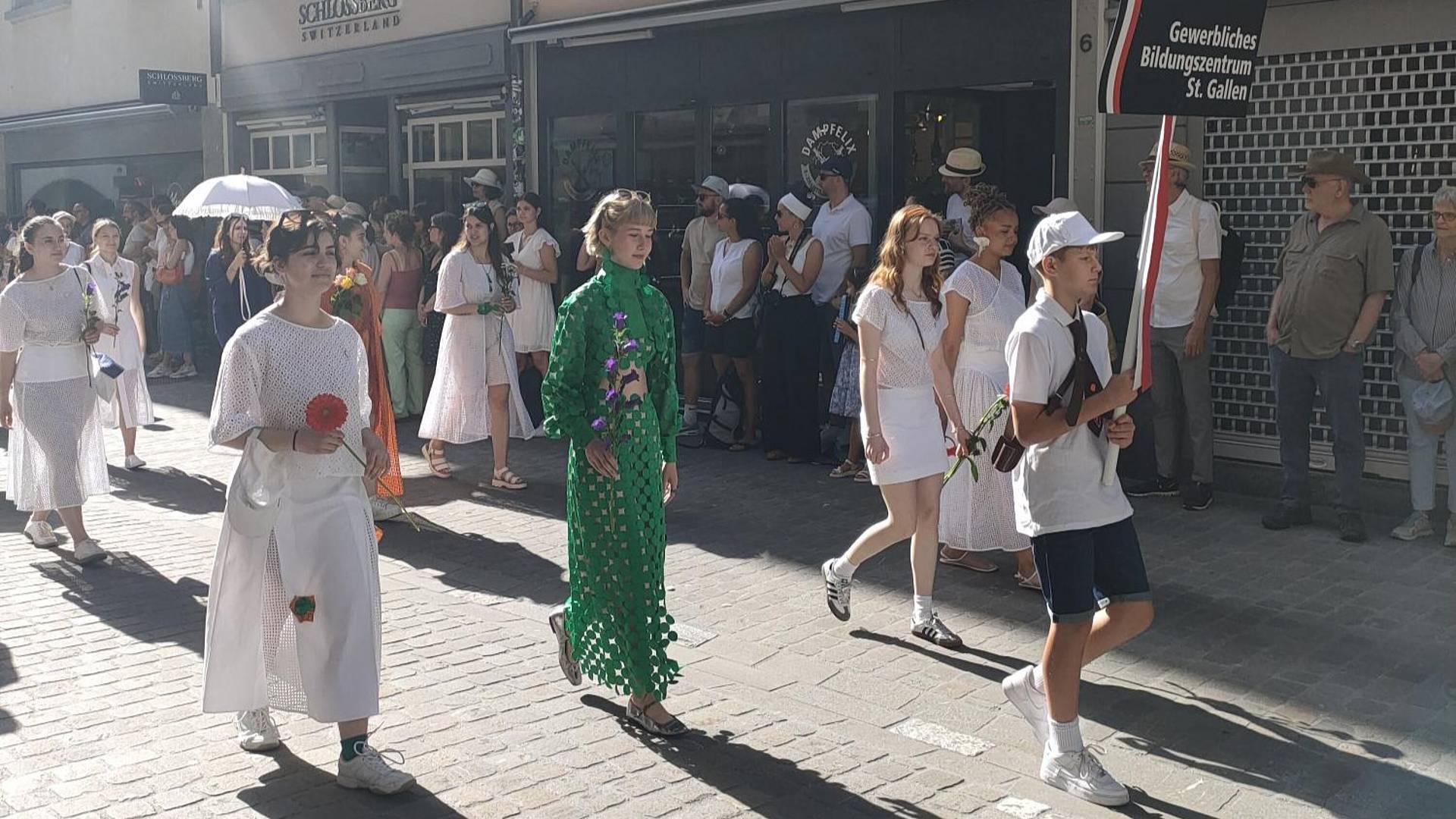 Auf diesen Moment haben die Bekleidungsgestalter/-innen EFZ monatelang hingefiebert: Am St.Galler Kinderfest haben sie ihr eigenes Festkleid präsentiert. Während ihrer Modeschau nach dem Umzug, wurde dieses Video von Janis Graf gezeigt. Der Schüler der Fachklasse Grafik St.Gallen begleitete die intensive Vorbereitungsphase.
