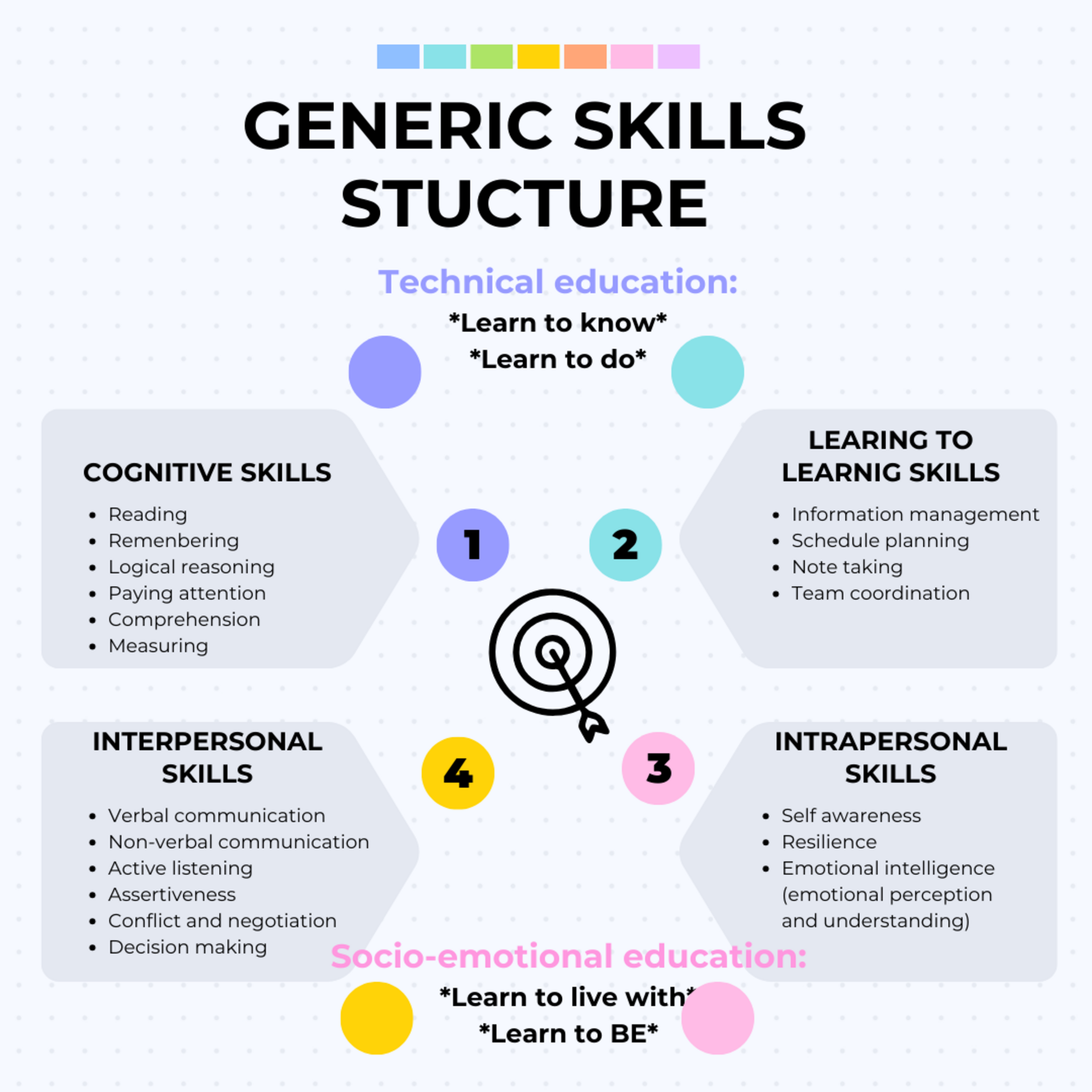 Diesen Begriff habe ich durch unsere spanischen Kolleginnen und Kollegen kennengelernt. Es geht um mehr als die uns bekannten Soft Skills wie Team- und Kommunikationsfähigkeit. Die Generic Skills umfassen auch die Widerstandsfähigkeit, die Selbstfürsorge oder Selbstmanagement.