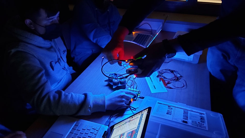 Lernende Elektroniker/innen EFZ im ersten Ausbildungsjahr erforschten mit ihrer Fachlehrperson Fabian Reifler in einer Kooperation mit Smartfeld, durch selbst programmierte Mikroexperimente, entlang des Prinzips T.A.R. (Transmission, Absorption und Reflexion), das herausfordernde Phänomen elektromagnetischer Strahlung als Grundlage der Photonik. Mit dem Ziel, echte Optimierungsprobleme aus Spitzenforschung und Industrie mittels Photonik kreativ zu lösen, setzten sie sich unter anderem mit lichtschnellen Datenströmen, herausfordernden Datenmengen und den Tricks effizienter Programmierung auseinander.