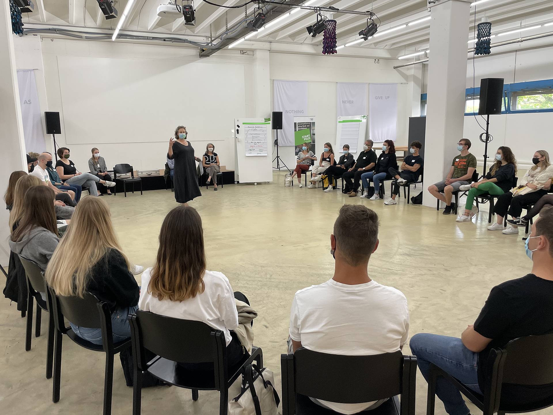 «Think outside the box» ist das Credo unserer HF Lehrgänge in der Schule für Gestaltung. Das setzen wir schon zum Beginn des neuen Schuljahres in die Tat um. Und verlassen für den Startschuss der Lehrgänge Interactive Media Design, Industrial Design und Visuelle Gestaltung unser Schulhaus. In der Innovationsschmiede Startfeld im Westen der Stadt St.Gallen treffen die über 30 Studierenden erstmals aufeinander.