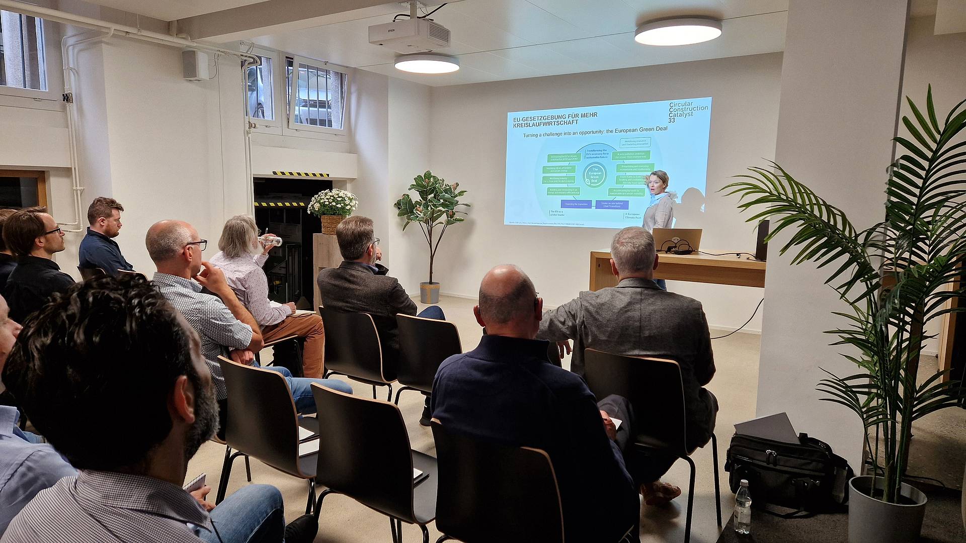 Während ihres Inputs verwies Marloes Fischer auf die rechtliche Verankerung der Kreislaufwirtschaft. Seit dem 1. Januar 2025 ist der Artikel 35j im Umweltschutzgesetz zu ressourcenschonendem Bauen in Kraft. Dieser schreibt folgendes vor: