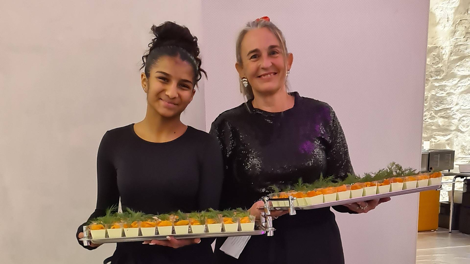 Eine neue Möglichkeit hat das Team des GBS-Restaurants Mampf für sich sogleich am Weihnachtsanlass wahrgenommen. Das Team ist bekanntlich nicht nur auf das Mittagessen während des Schulunterrichts spezialisiert, sondern auch auf Event-Catering. Zum ersten Mal wurde das Essen als Flying Dinner serviert.