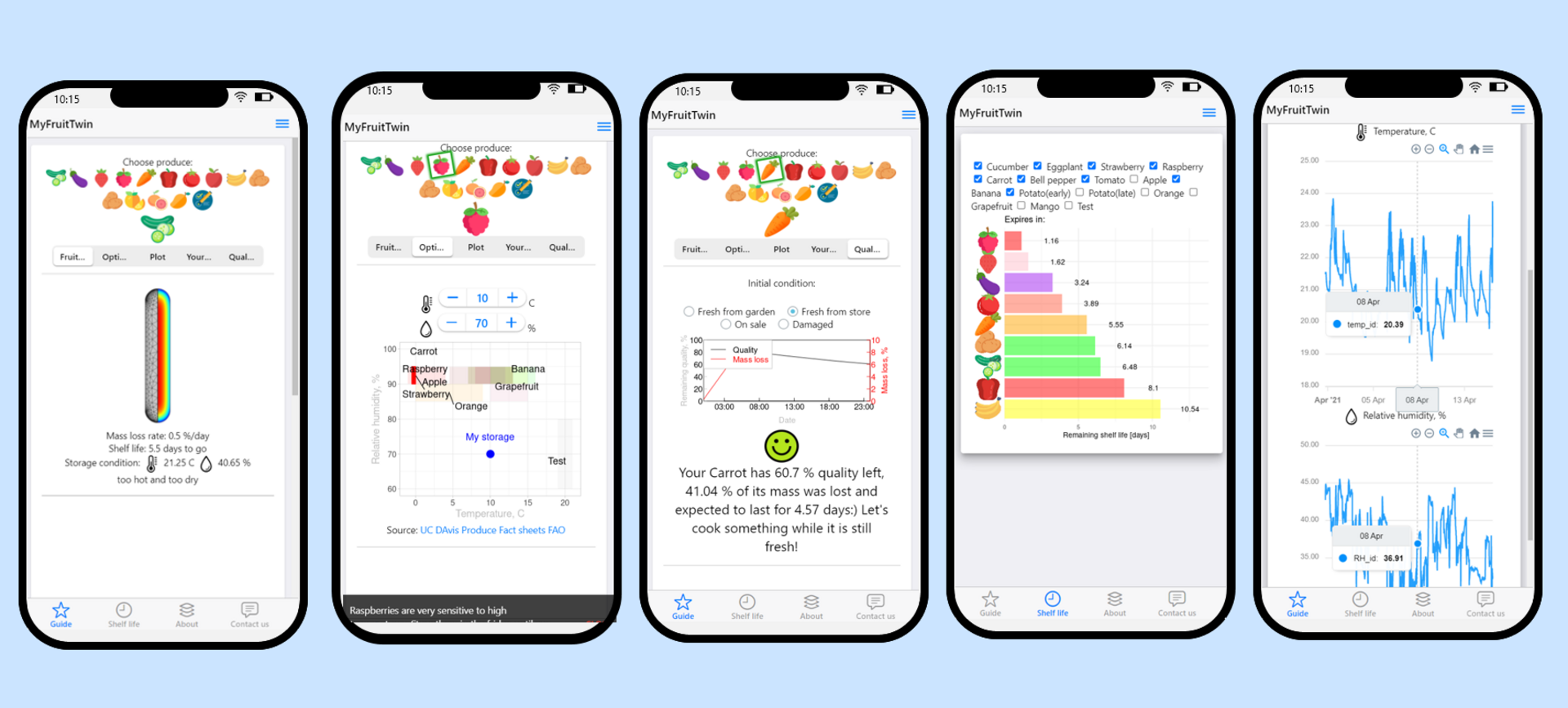 Nach einem Quiz über die Haltbarkeit von Lebensmitteln, bei dem die Lernenden ihr Wissen unter Beweis stellen, geht's an die Demonstration. Die App «MyFruitTwin» basiert auf einem digitalen Zwilling, der Vorhersagen über die Haltbarkeit von Lebensmitteln erlaubt. Die Forschenden Kanaha Shoji und Jörg Schemminger erklären, wie die App digitale Zwillinge der Esswaren kreiert und deren Verfall anzeigt: