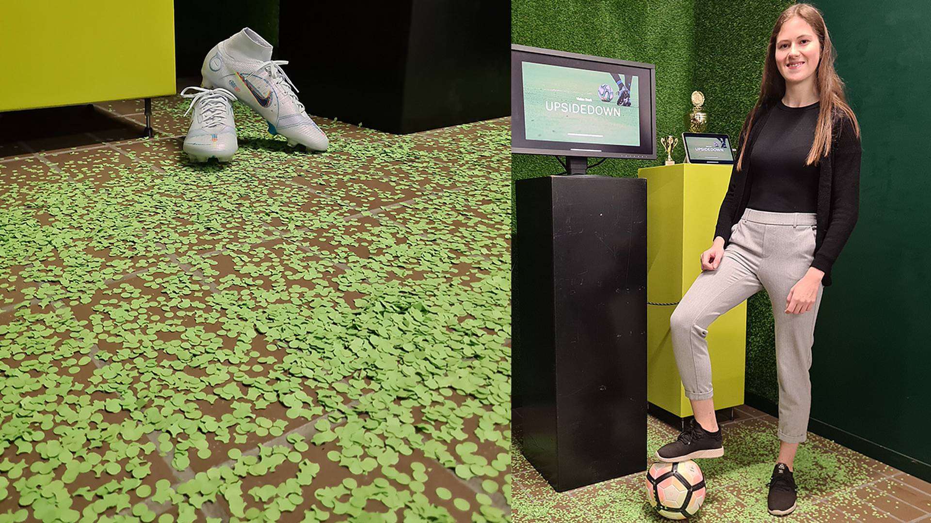 Im Prototyp fürs Vordiplom konzentriert sich Engetschwiler auf die Lohnschere, die sie aufgrund ihrer weiteren Recherche mit Zahlen verdeutlicht: «Mit Karim Benzema verdient einer der besten Fussballspieler der Welt 1,5 Millionen Franken im Monat. Als weltweit beste Spielerin erhält Alexia Putellas ein monatliches Gehalt von 30'000 Franken. Für das gleiche Salär wie Putellas arbeitet Benzema nur 15 Stunden.»
