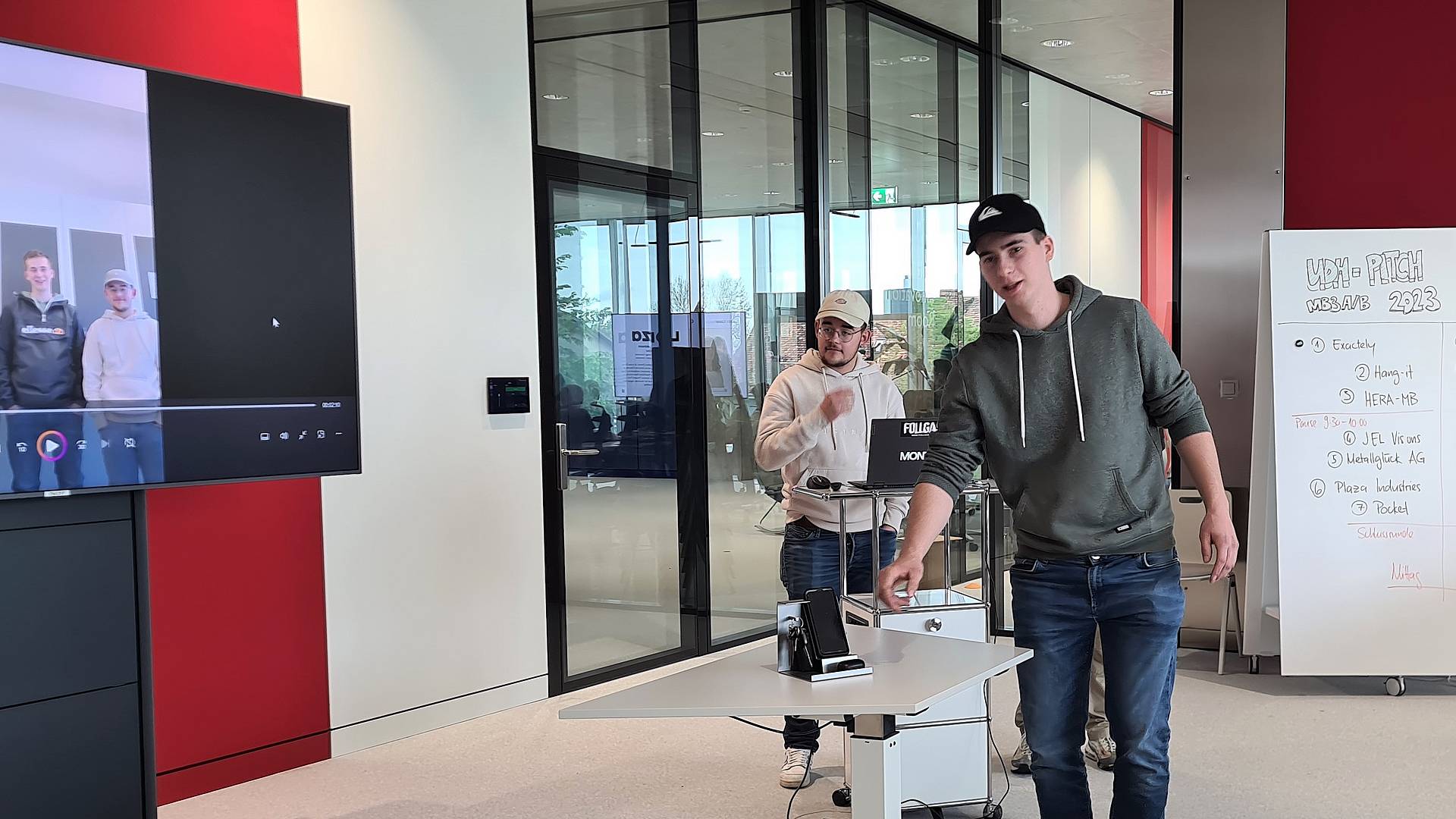 Bereits die Kickoff-Veranstaltung führten Christoph Hensch und Driton Ukgjini im Square durch, dem Learning Center der HSG. Also an jenem Standort, wo eine Lern- und Lehrkultur für innovative Geschäftsideen schon besteht. Die Gruppe JEL Visions um Lino, Julian und Elia liess sich davon inspirieren. «Als wir durch das Gebäude liefen, haben wir bemerkt, wie die Studierenden ihre Schlüssel, ihr Portemonnaie und ihr Handy auf dem Tisch ausbreiten», erklärt Elia.