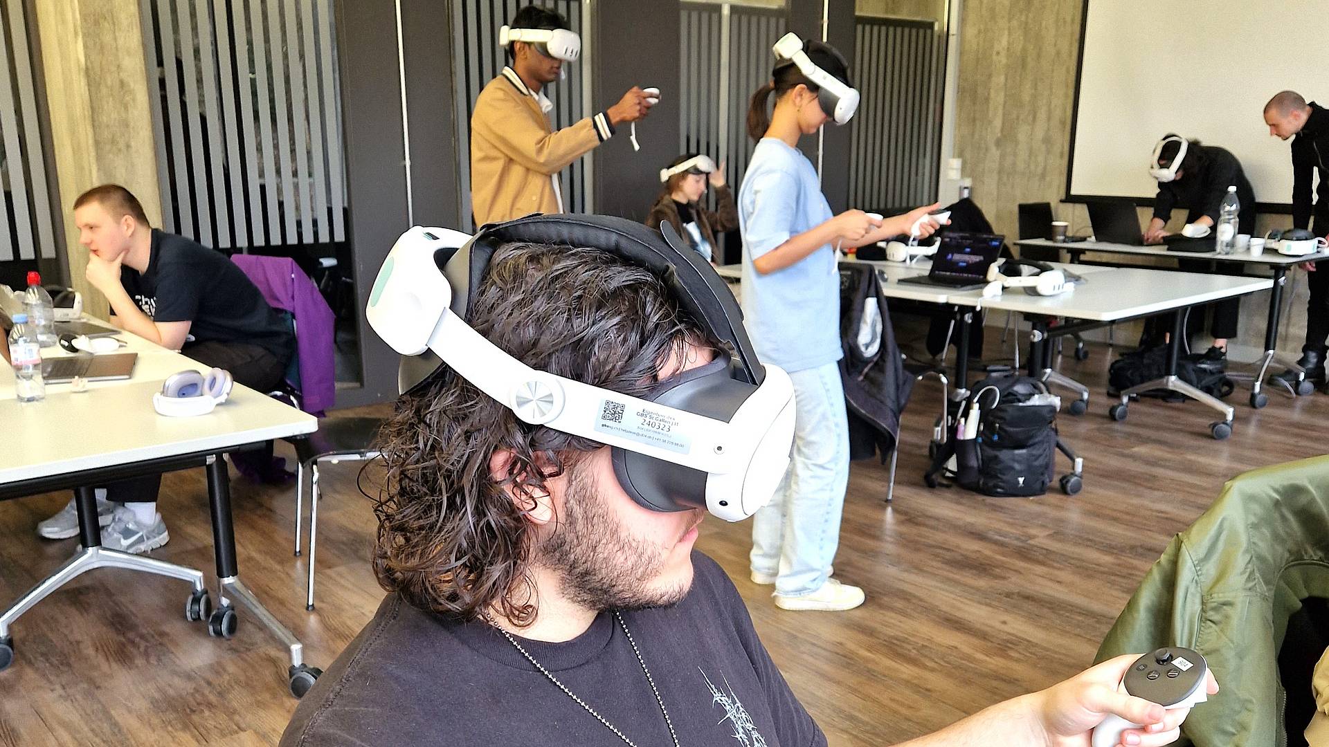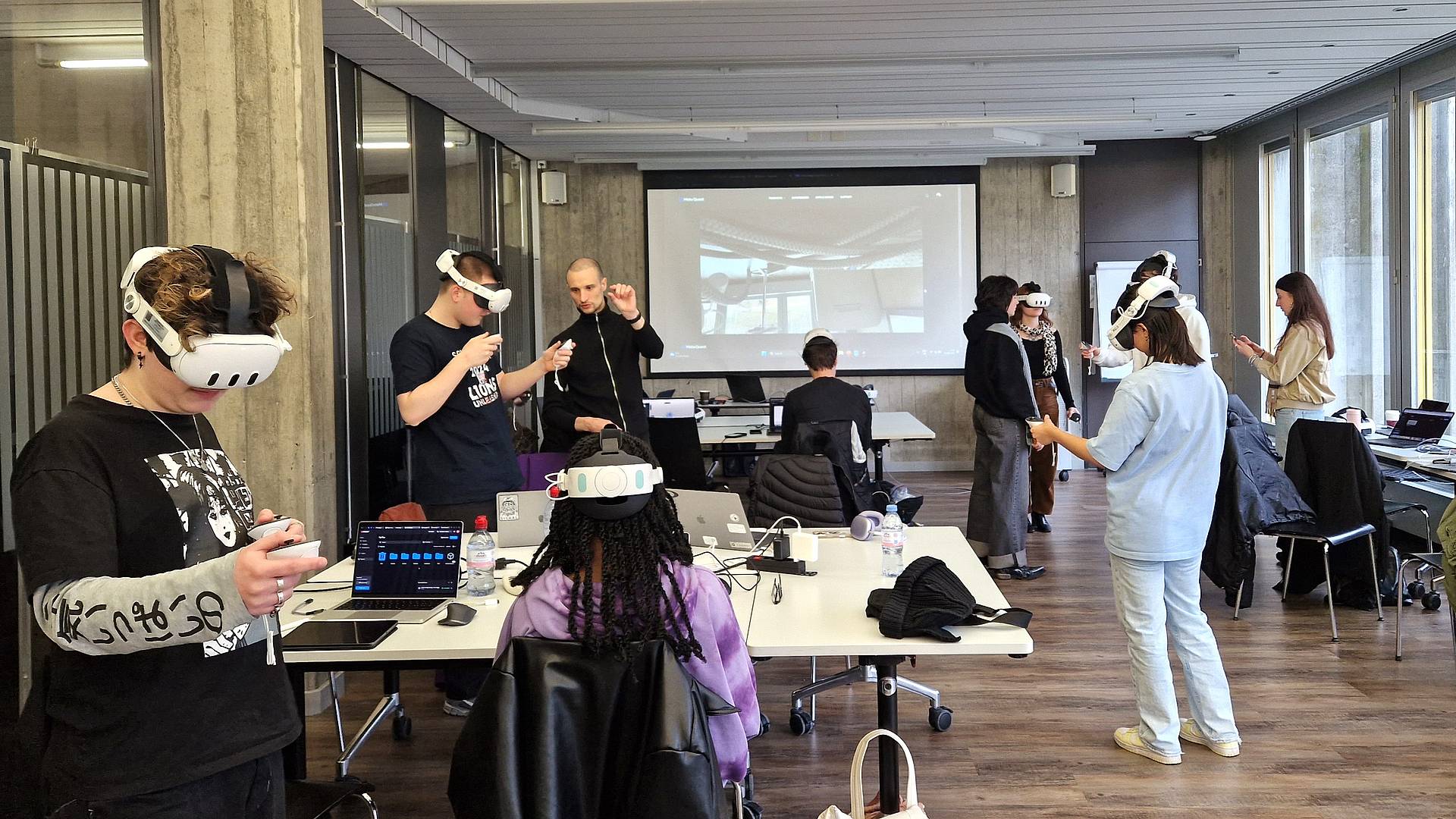 Auf den Workshop in Immerea haben sich die beiden angehenden Interactive Media Designerinnen Vanessa und Kimberly schon seit Bekanntgabe des Datums gefreut. «Es ist cool, dass wir hier eine neue Welt kennenlernen und experimentieren dürfen», sagt Vanessa. Gemeinsam mit Flavia Mazzanti und Manuel Bonell von Immerea machten die Lernenden ihre ersten Erfahrungen mit Mixed Reality. Aris gefiel dabei, die Möglichkeiten selbstständig zu entdecken: «Sie vermitteln uns die Grundlagen und wir dürfen die Software selber austesten – das mag ich.»