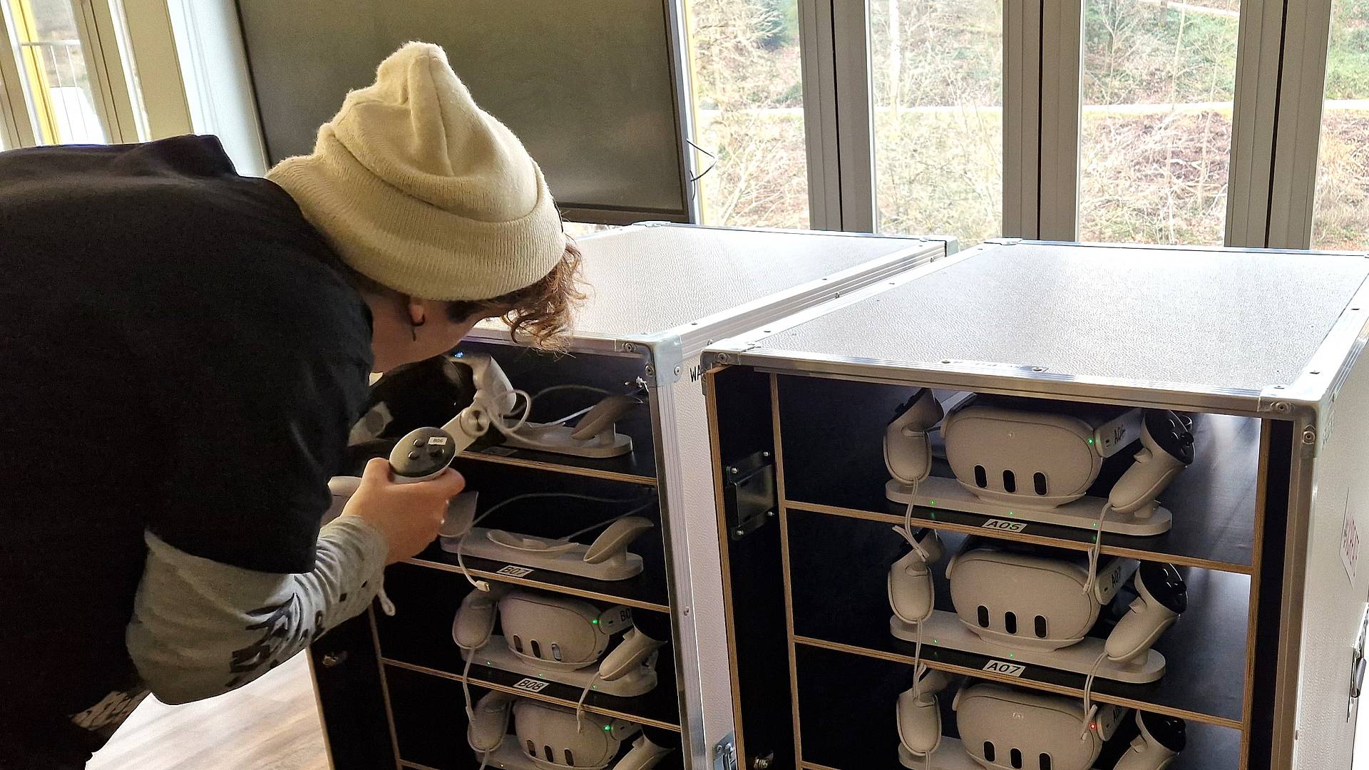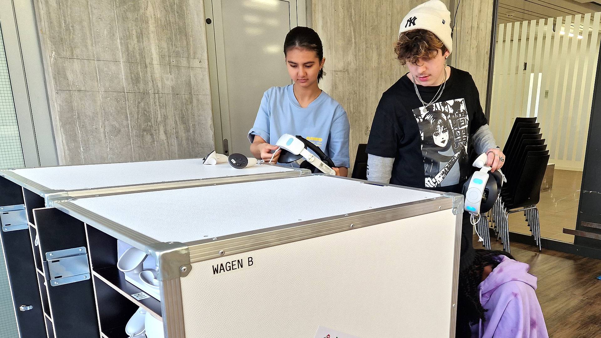 Während man bei reiner Virtual Reality komplett in eine computergenerierte Welt eintaucht, werden bei Augmented Reality digitale Informationen über die reale Welt gelegt. Mixed Reality kombiniert hingegen beide Welten, damit sie miteinander interagieren können. Dabei erscheinen digitale Objekte so, als würden sie sich in der realen Umgebung befinden und auf diese reagieren. Realisiert wird dies mit VR-Brillen, die das GBS St.Gallen auch wegen des Projekts «XReate – Lernen und lehren im Metaverse» angeschafft hat.