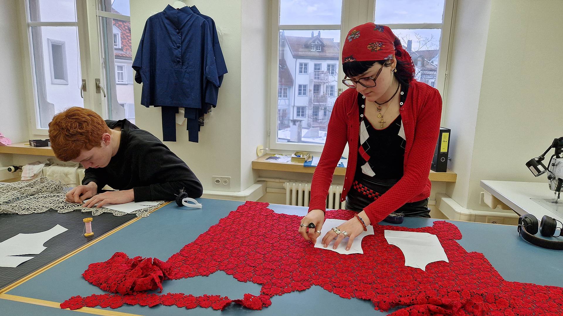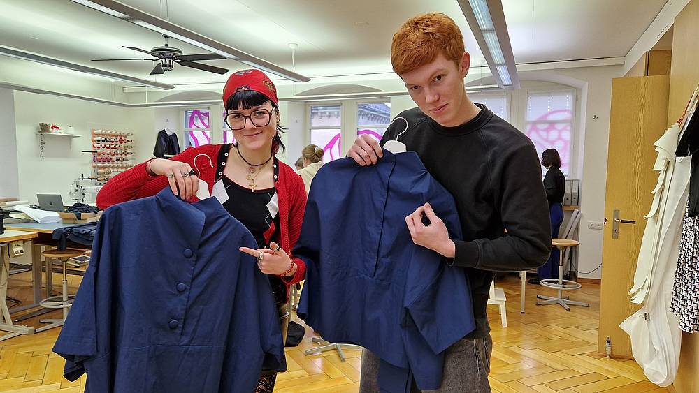 Sienna und Robinson lernen als Créateurs de vêtements am CFP Arts in Genf. Während eines vierwöchigen Austausches arbeiteten sie im Couture-Lehratelier des GBS St.Gallen an Kundenaufträgen mit. Die beiden Gäste aus der Westschweiz fühlten sich von den Bekleidungsgestalter/-innen EFZ gut aufgenommen und gefördert. Hast auch du Interesse an einem (inter)nationalen Austausch? Dann melde dich unter moveon@gbssg.ch.