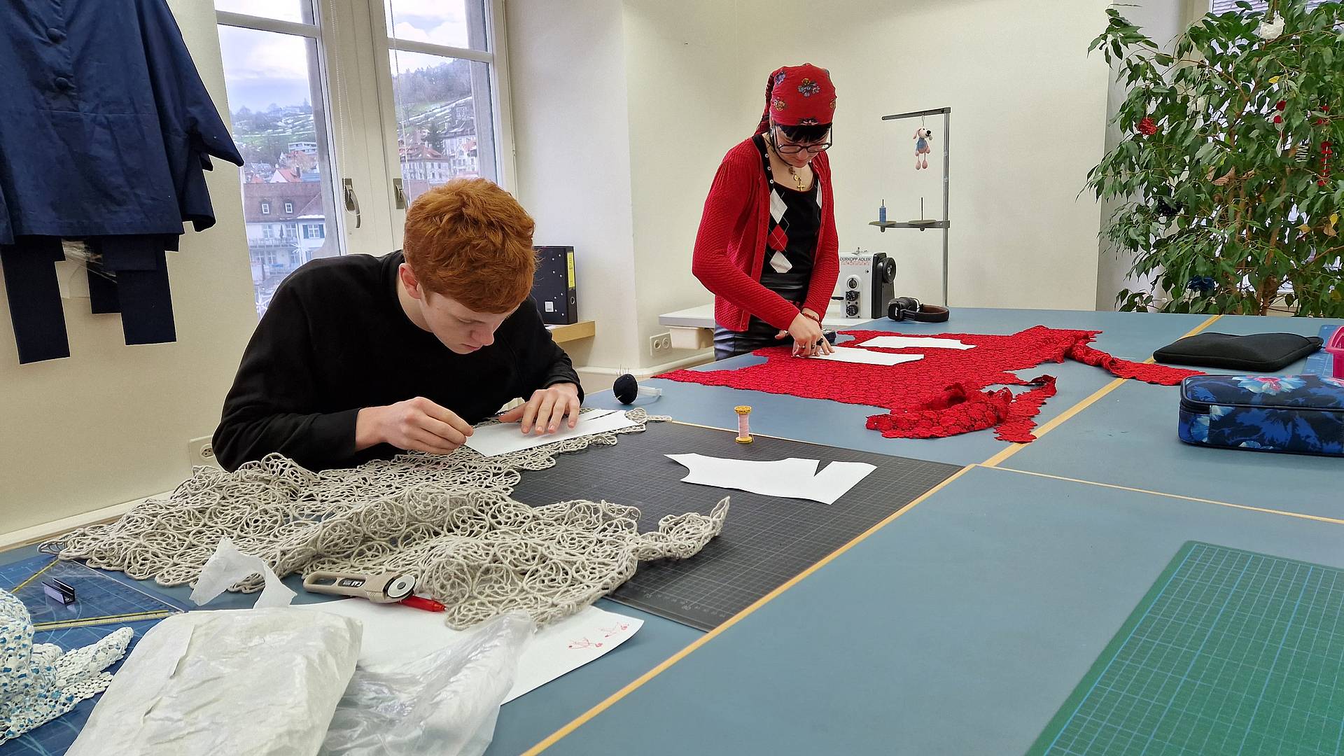 Qu’est-ce qu’imaginer, dessiner, réaliser un vêtement ? Nach ihrem Aufenthalt in St.Gallen haben Sienna und Robinson eine noch klarere Vorstellung davon, was es bedeutet, ein Kleidungsstück zu entwerfen, zu gestalten und umzusetzen. Die beiden Schüler vom Centre de Formation Professionnelle Arts in Genf wurden in ihrer Berufswahl bestärkt. Sienna erzählt: «Als Bekleidungsgestalterin kannst du deine eigenen Ideen umsetzen. Ich interessiere mich stark für Mode, und Nähen ist für mich ein cooles Hobby, das ich jetzt professionell lernen und ausüben darf.»