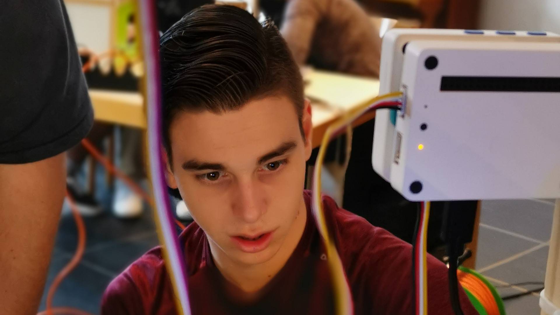 Tygo und Tobian beschäftigten sich derweil mit dem IoT-Cube und erstellten einen Code, der die Raumtemperatur misst und das Resultat auf dem Display des Würfels anzeigt. «Zusätzlich entwickelten wir ein Dashboard, das eine Überwachung der Temperatur auf einem Laptop ermöglicht», berichten die beiden.