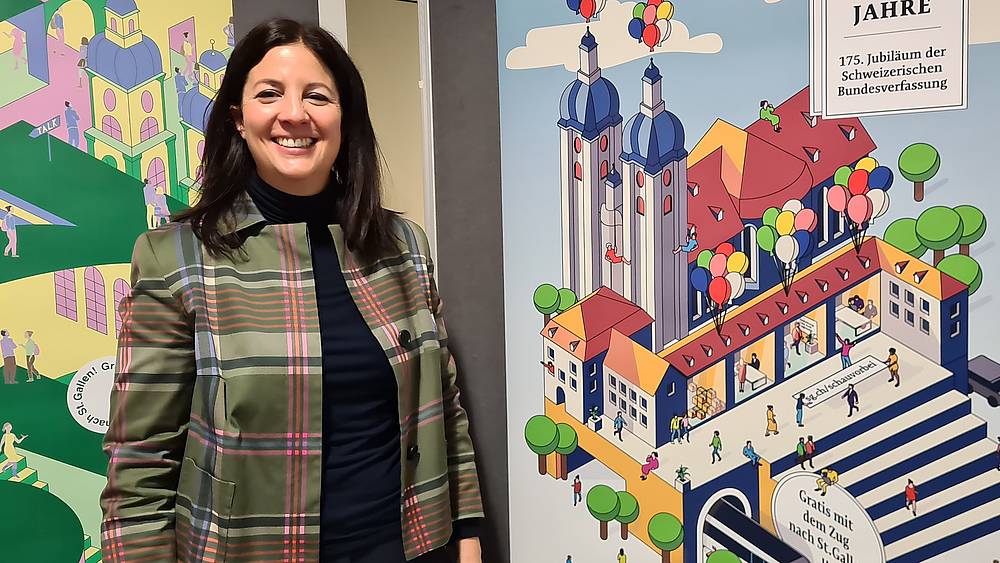 - Auf der imposanten Bühne der St.Galler Festspiele wird das Eröffnungsfest mit Fahnenschwingerinnen und Fahnenschwingern aus allen Kantonen der Schweiz für Aufsehen sorgen. Dazu wird Bundesrätin Karin Keller-Sutter die Gäste begrüssen. Die Bevölkerung kann mit den Mitgliedern der Kantonsregierung in direkten Kontakt treten und deren Arbeitsräume besichtigen.