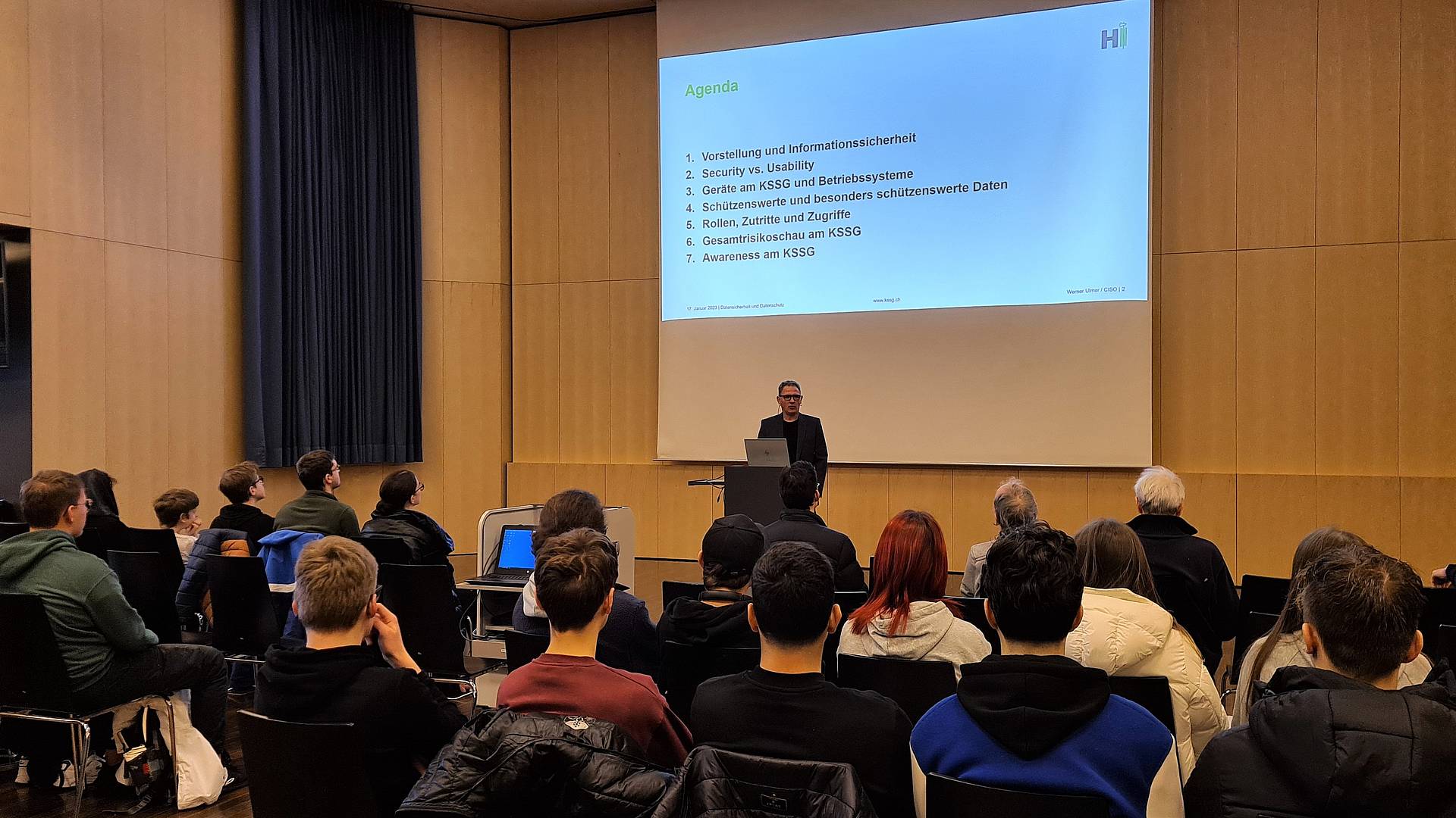 Theorie ist wichtig, aber nicht ohne Praxisbezug. Zum Abschluss des Moduls Datenschutz und Datensicherheit besuchte Werner Ulmer die 1.-Lehrjahr-Klassen der Informatiker*innen. Er berichtete in seiner Funktion als Chief Information Security Officer des Kantonsspitals St.Gallen aus erster Hand, wie sorgfältig mit den Daten von Patienten*innen umgegangen wird.
