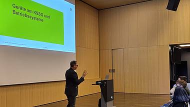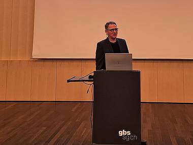 Ende 2018 wechselte er zum Kantonsspital St.Gallen und erhielt den Auftrag, die Informationssicherheit zu erhöhen. «Das heisst, wir betreuen 10'000 Mitarbeitende respektive User, die auf verschiedene Spitäler aufgeteilt sind. Hier für ein Information Security Managementsystem verantwortlich zu sein, ist eine grosse Herausforderung», erklärte er in der Riethüsli-Aula den 1-Lehrjahr-Klassen der Informatiker*innen und den anwesenden Lehrpersonen der Technischen Berufe.