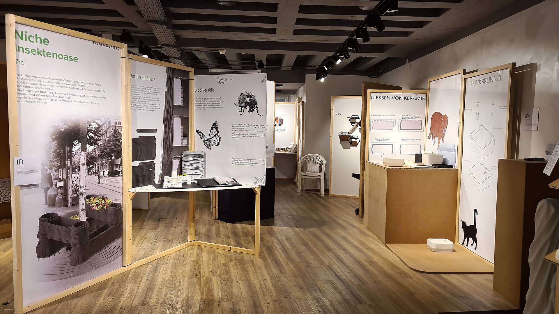 Im ehemaligen Swisscom-Shop in der Neugasse 26 stehen die Abschlussarbeiten für die unerschöpflichen Möglichkeiten des Designs. Die Diplomarbeit von Jasmine Vaszary (Industrial Design HF) dreht sich zum Beispiel um den Alltag in den Stationsräumen von Tierspitälern. Sie hat ein Produkt gestaltet, das den Stresslevel reduziert und den Aufenthalt für Tiere in den Stationsräumen angenehmer macht.
