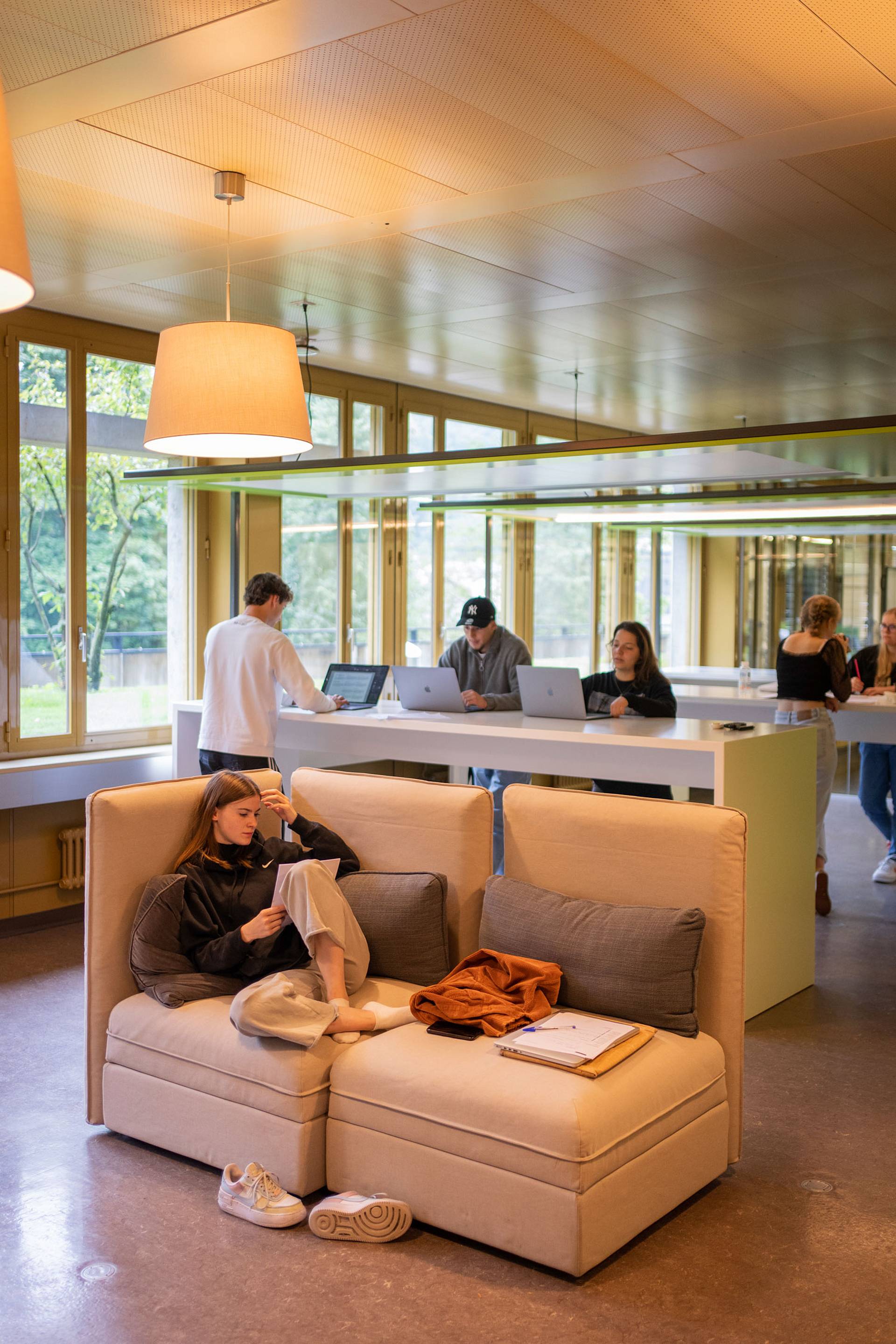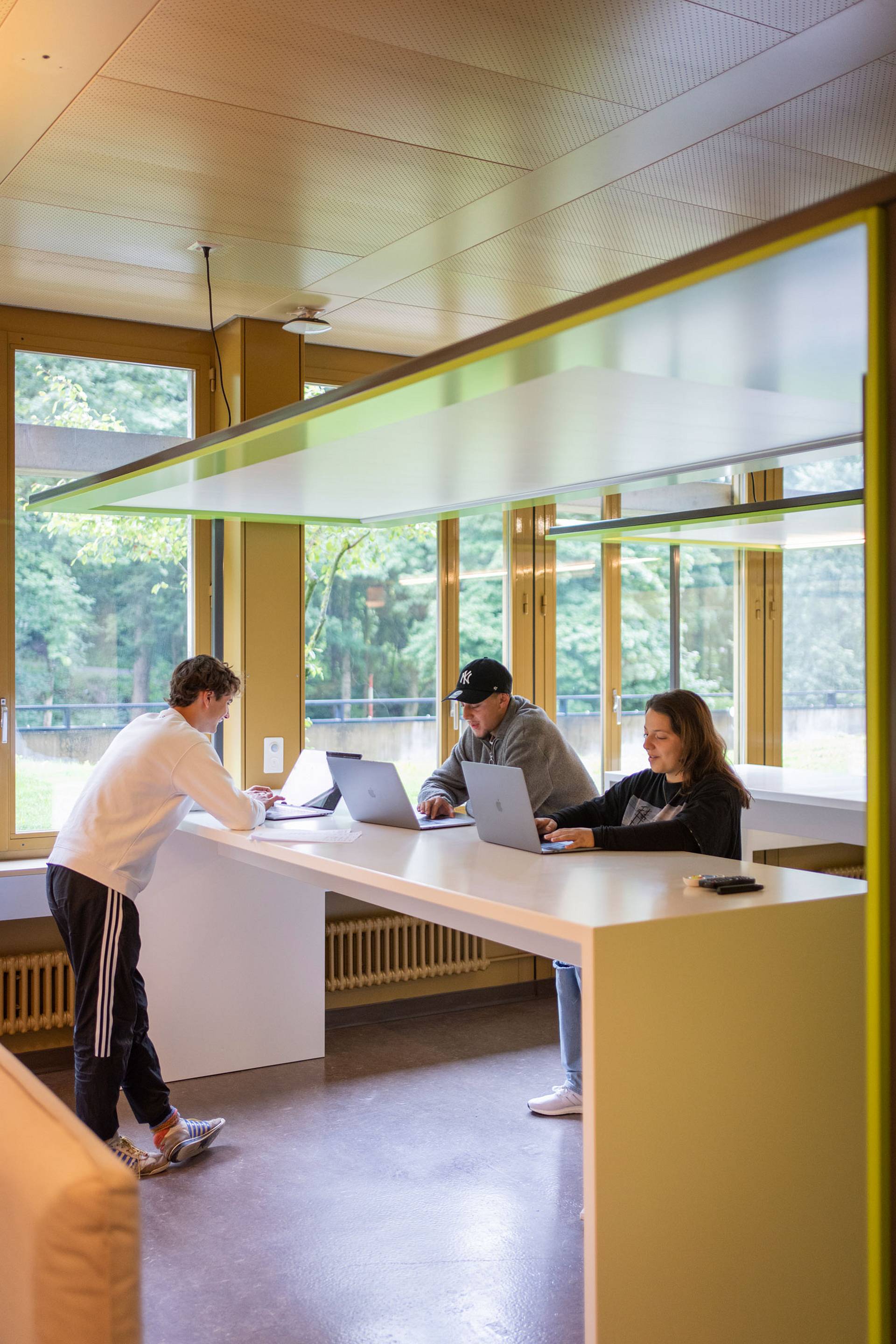 Die offene Umgebung verfügt neben den bekannten PC-Arbeitsplätzen über bequeme Sitzgelegenheiten, Bereiche für Präsentationen und Hochtische an welchen Projekte in Gruppen besprochen werden können. Blended Learning ist, gemäss Patrick Forrer, Abteilungsleiter am GBS St.Gallen für verschiedenste Berufsfelder geeignet. Das Modell lasse je nach Bedarf viele Ausgestaltungen zu, etwa beim Verhältnis zwischen gemeinsamem und individuellem Lernen oder dem zentralen und dezentralen Arbeiten.