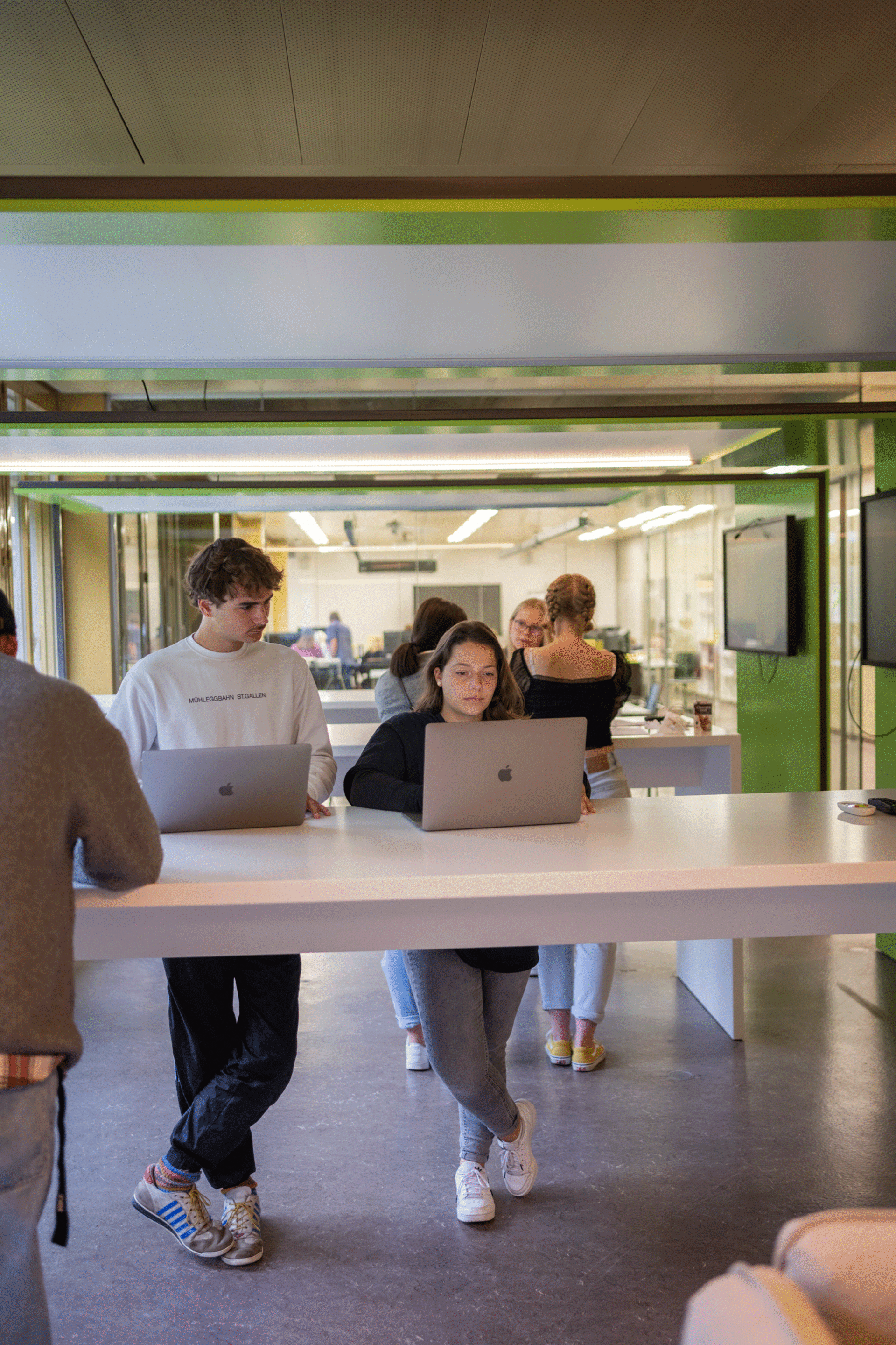 In der Blended Learning Umgebung des GBS St.Gallen werden die Interactive Media Designer/innen EFZ und die Grafiker/innen EFZ ausgebildet.