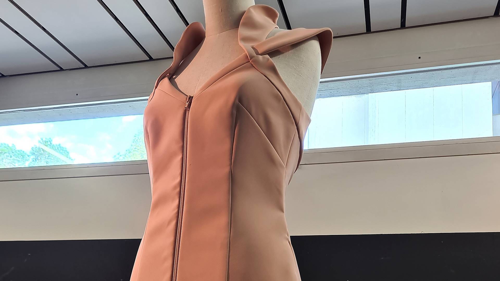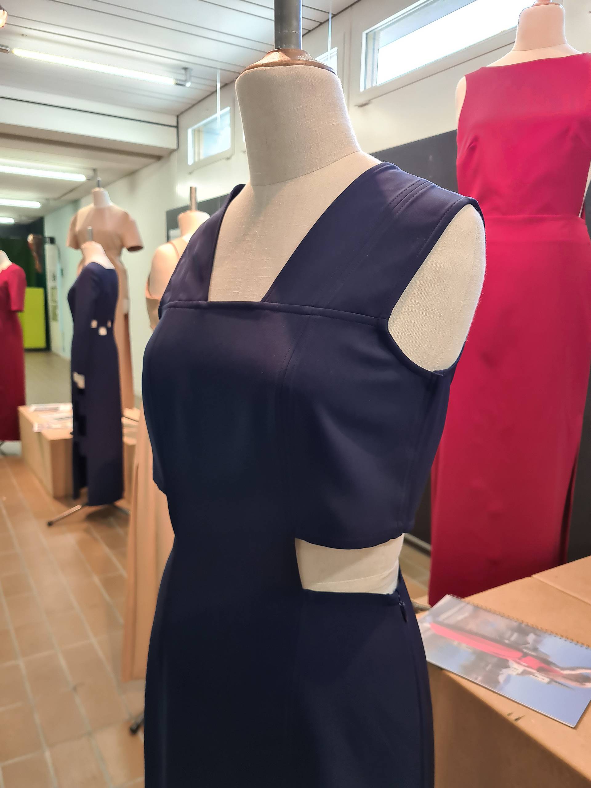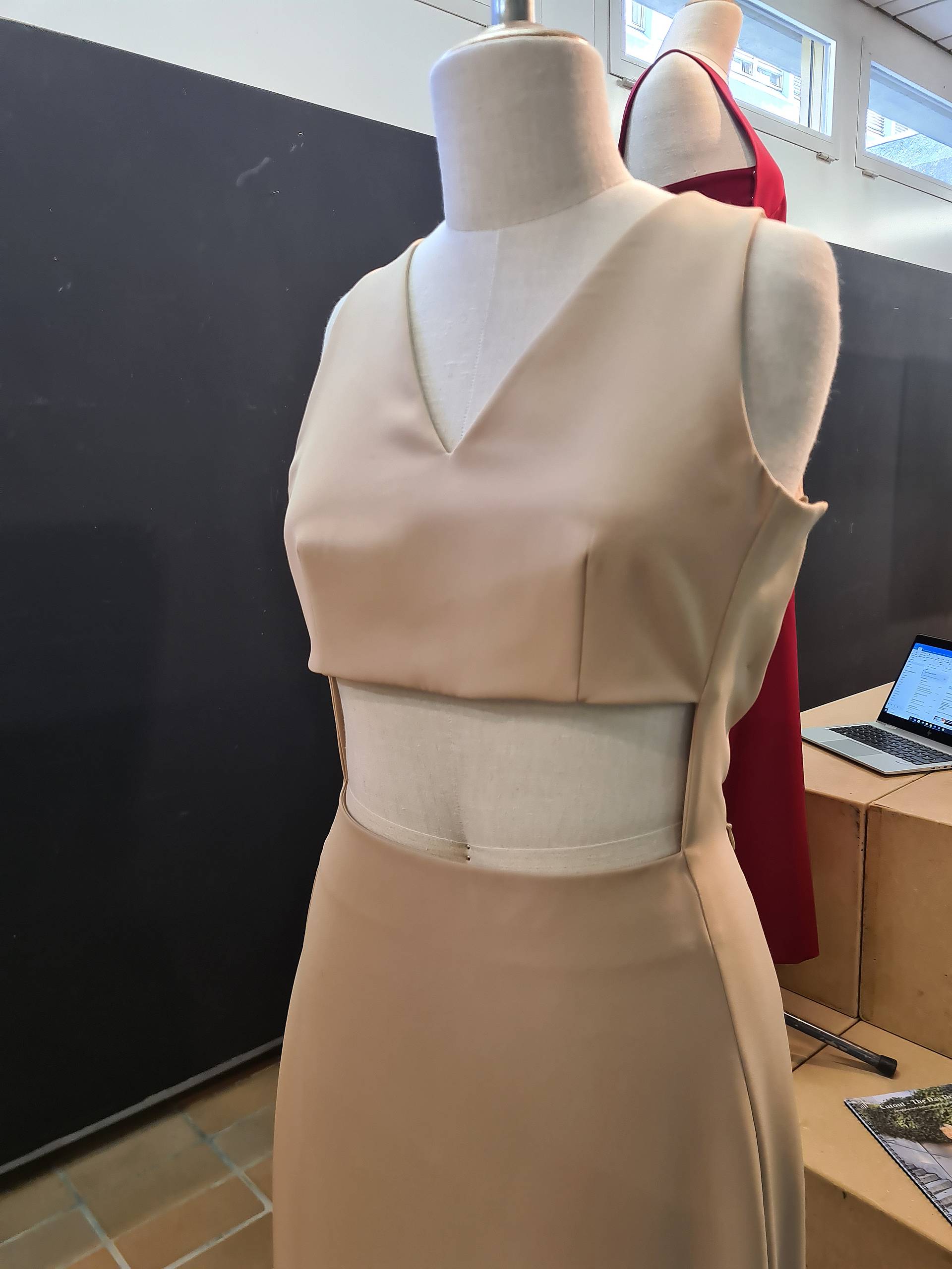 In einem nächsten Schritt wurden die Skizzen in colorierten Modezeichnungen dargestellt, um das Modell zu visualisieren. Ausserdem fertigten die Lernenden technische Flachzeichnungen und technische Detailzeichnungen an. Anschliessend folgten Schnittgewinnung und Anprobe. «Für mich war es interessant zu sehen, wie sich mein Kleid von einer Skizze in ein finales Kleidungsstück entwickelt», sagt Christoph.