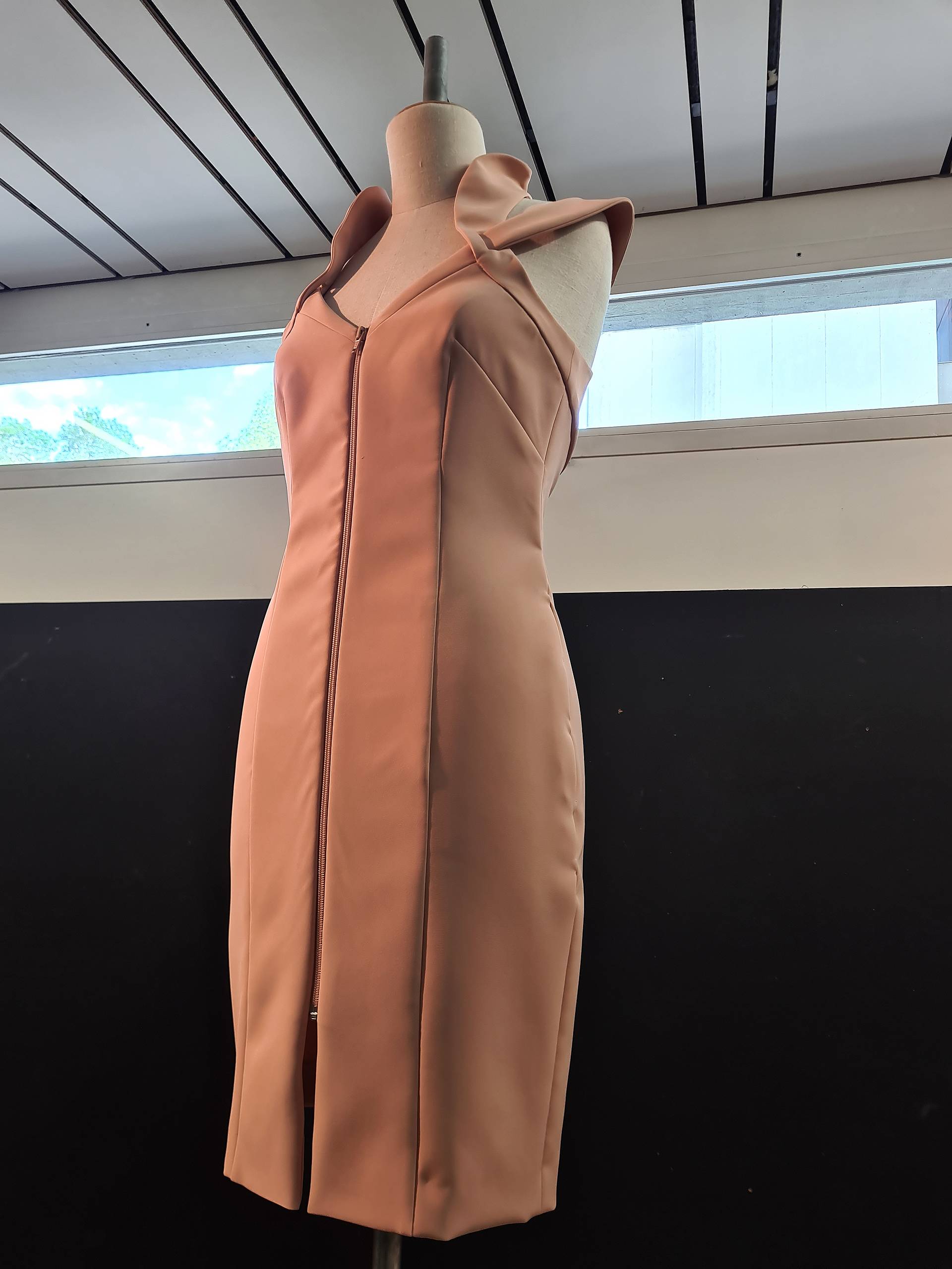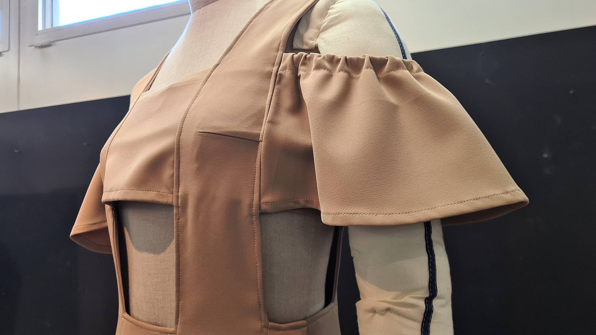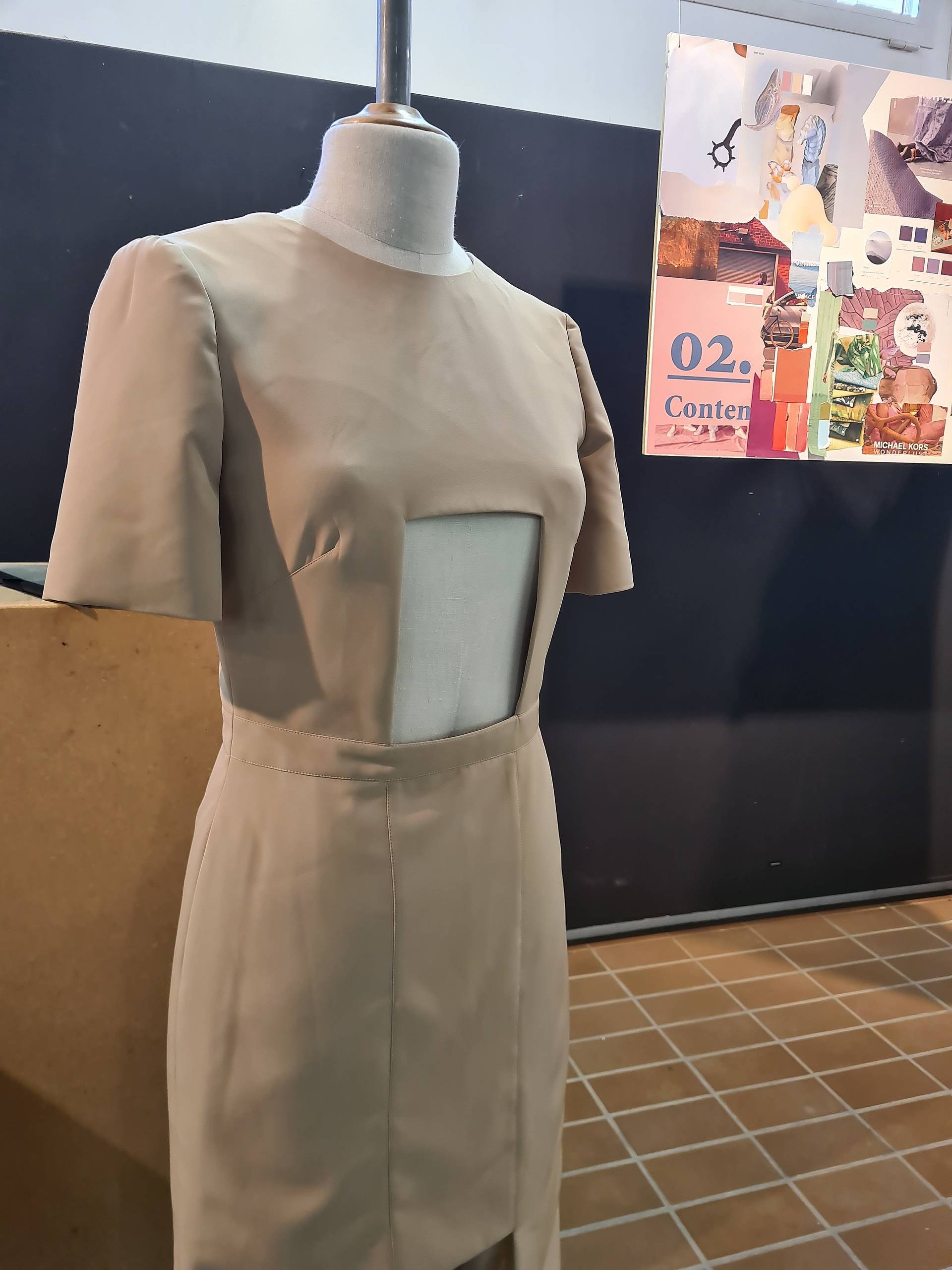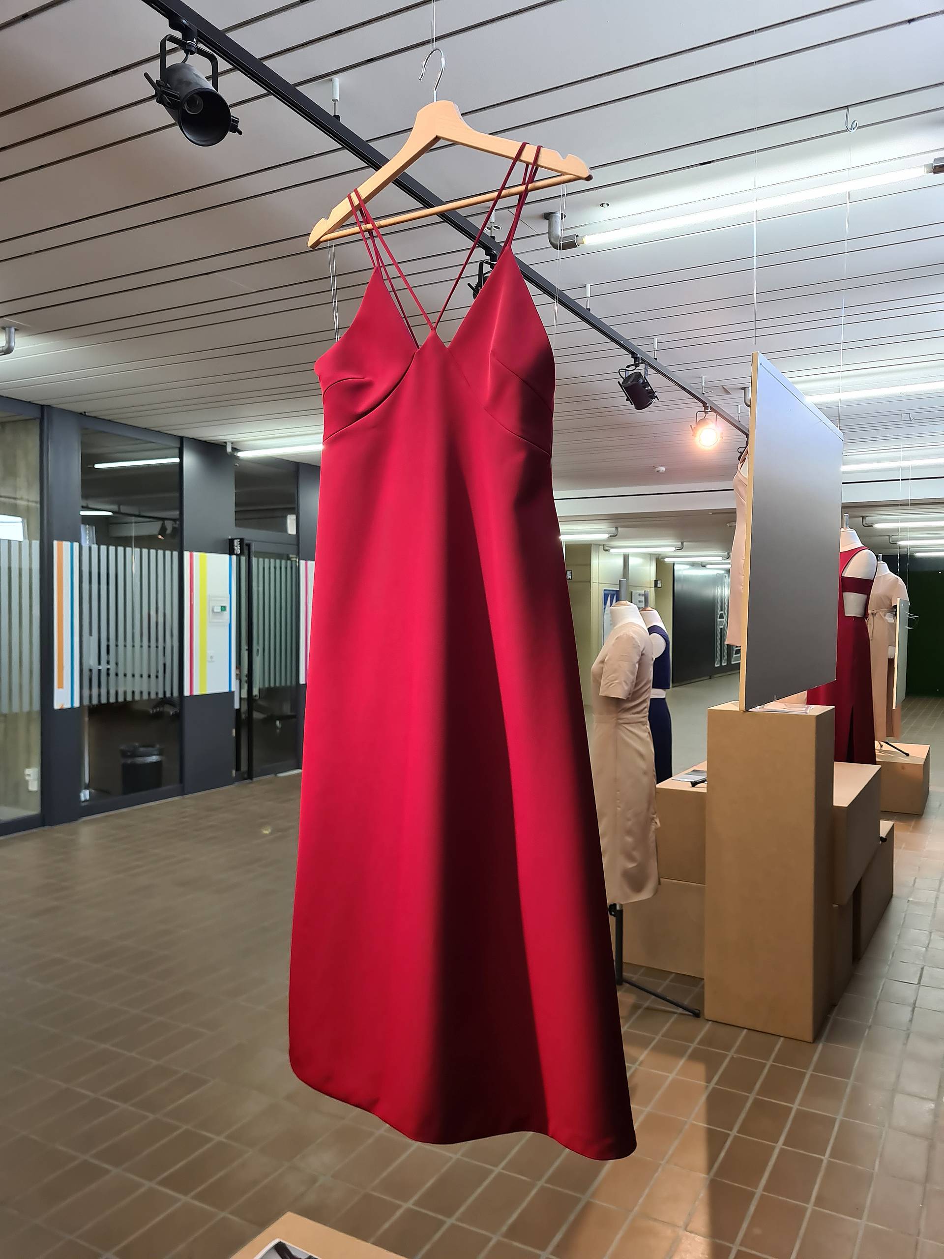 In einem nächsten Schritt wurden die Skizzen in colorierten Modezeichnungen dargestellt, um das Modell zu visualisieren. Ausserdem fertigten die Lernenden technische Flachzeichnungen und technische Detailzeichnungen an. Anschliessend folgten Schnittgewinnung und Anprobe. «Für mich war es interessant zu sehen, wie sich mein Kleid von einer Skizze in ein finales Kleidungsstück entwickelt», sagt Christoph.