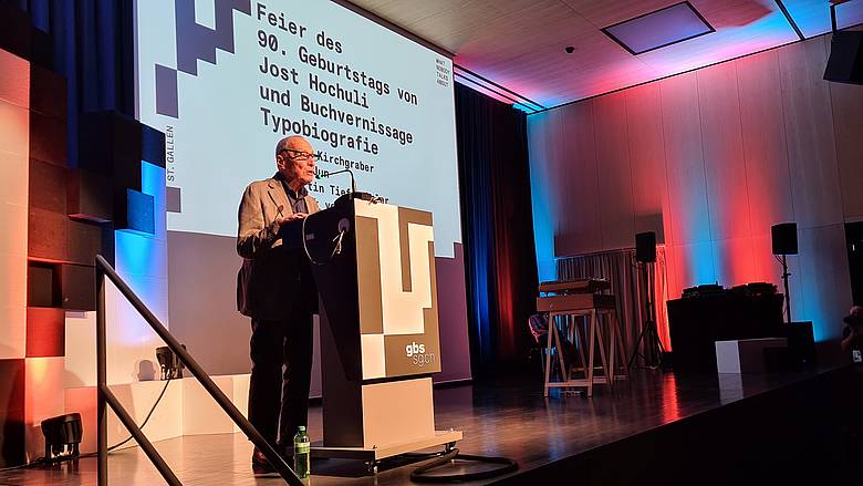 Solche Denkanstösse gab es am Freitagnachmittag in der Aula des GBS St.Gallen praktisch im Minutentakt. Die Besucher/-innen, darunter zahlreiche Studierende der HF-Lehrgänge der Schule für Gestaltung St.Gallen, kamen auch in den Genuss von Best-Practice-Beispielen. Zum Beispiel aus Lausanne von Priscilla Balmer und Yvo Hählen (Grafikdesignstudio Balmer Hählen) sowie aus Berlin von Schriftgestalterin Ulrike Rausch (LiebeFonts).