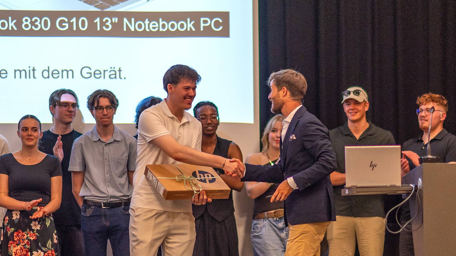 Genc Hoxha sicherte sich nicht nur den obersten Platz auf dem Podest der technischen Berufe mit drei Ausbildungsjahren, sondern mit Losglück auch noch den von HP gesponserten Laptop-Gutschein.