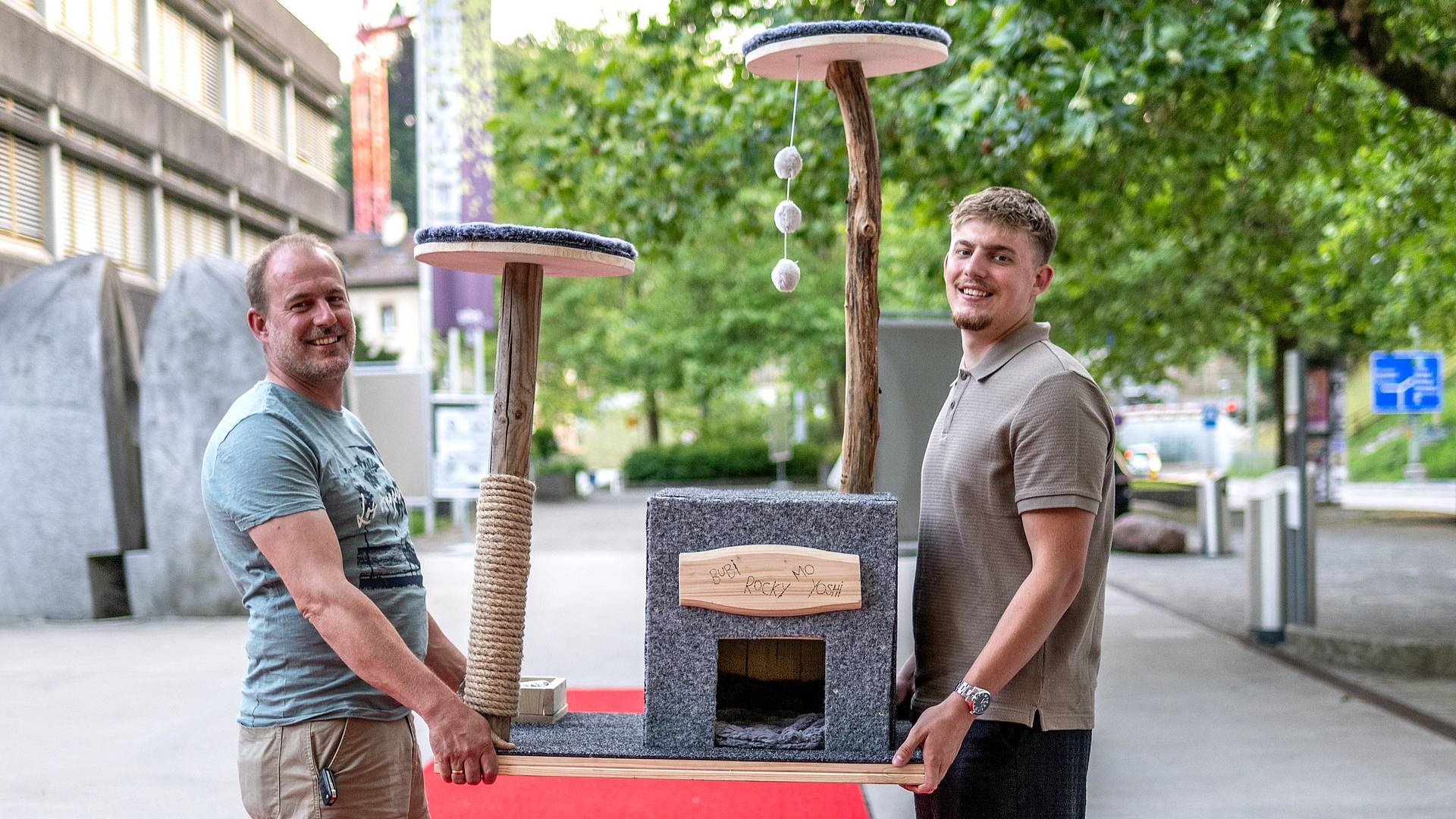 Bei den Bauberufen über drei Ausbildungsjahre freute sich Tobias Wälle über die goldene Auszeichnung. Er befasste sich intensiv mit den Tierschutzrichtlinien und schuf mit seiner Vogel-Voliere ein Paradies für Papageien. Lehrer Urs Wild freute sich für den Maurer EFZ: «Die Entscheidung, die Voliere auf einem Traktoranhänger zu bauen, um baurechtliche Hürden zu umgehen, zeugt von grosser Kreativität und Problemlösungsfähigkeit. Die Verwendung von übrig gebliebenen Materialien aus dem Hausbau seiner Familie unterstreicht zudem seinen nachhaltigen Ansatz.»