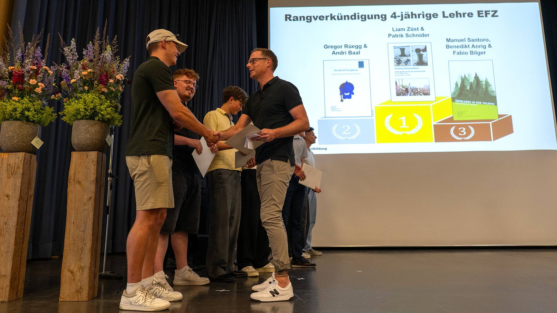 Eine solche persönliche Leistung haben alle Prämierten trotz der Versuchung «Künstliche Intelligenz» vollbracht. GBS-Rektor Daniel Kehl honorierte in seiner Ansprache: «Sie alle haben ihre Neugier und ihr Wissen eingebracht und stark an ihren Zukunftskompetenzen gearbeitet. Investieren sie ihre Zeit weiterhin in ihr persönliches Ding, denn dann haben sie weiterhin Erfolg.»