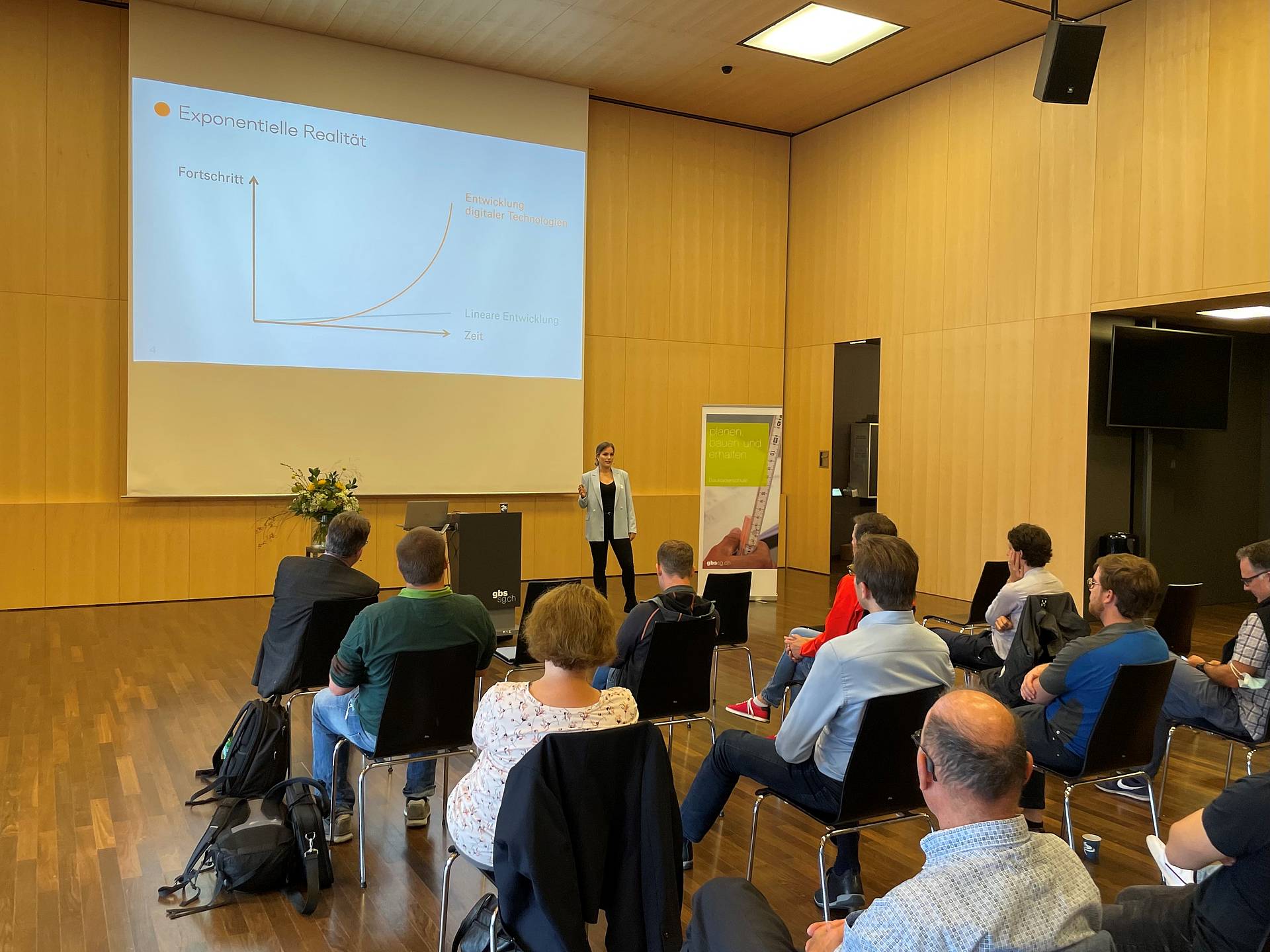 Einen Appell gibt es an diesem Morgen auch von Rebecca Büsser. Sie ist Finanzchefin des in Rapperswil beheimateten Startups Smino - ein IT-Unternehmen, das eine cloudbasierte Software für die Kommunikation innerhalb von Bauprojekten anbietet. Rebecca Büsser gibt spannende Einblicke in die Entstehungsgeschichte des jungen Unternehmens, erläutert die Herangehensweise an Probleme und betont immer wieder, dass Probieren über Studieren geht. «Das grösste Problem ist die Angst vor Veränderungen», sagt sie. Und: