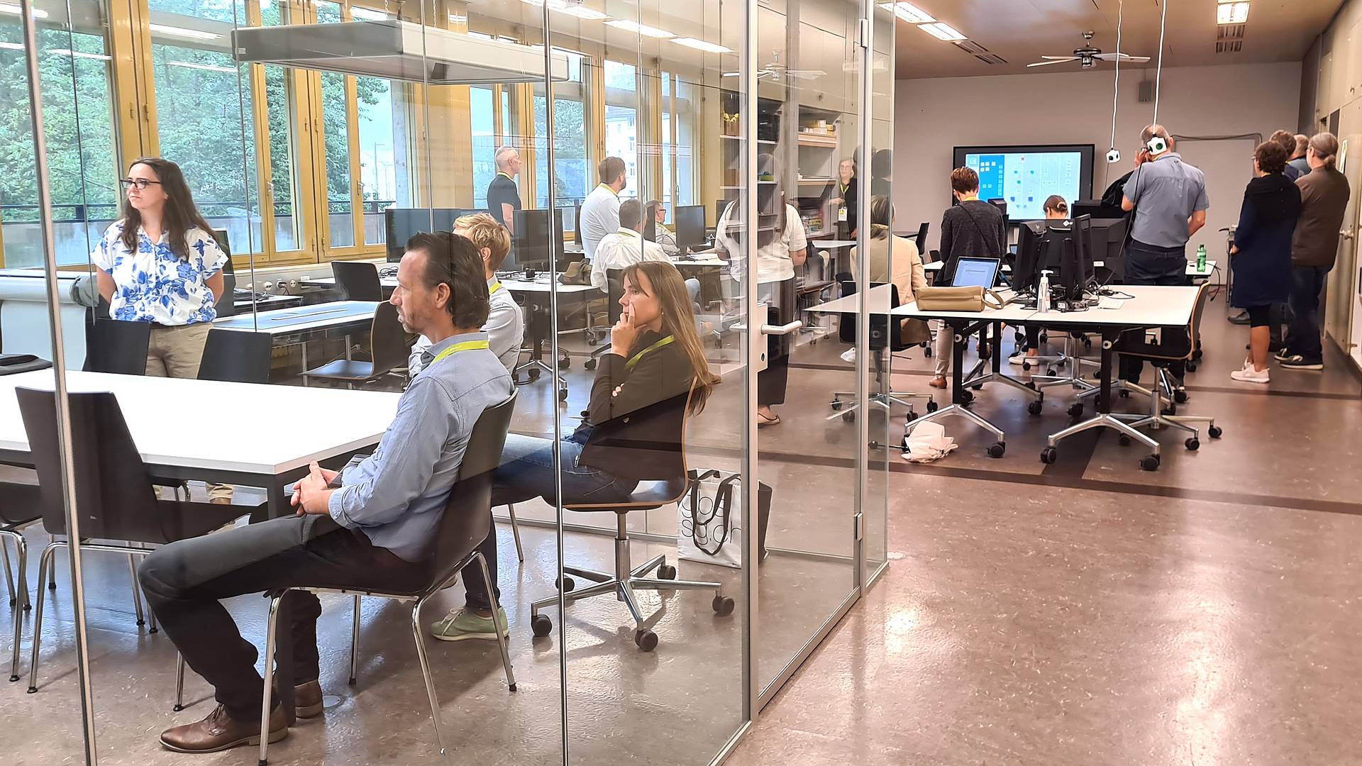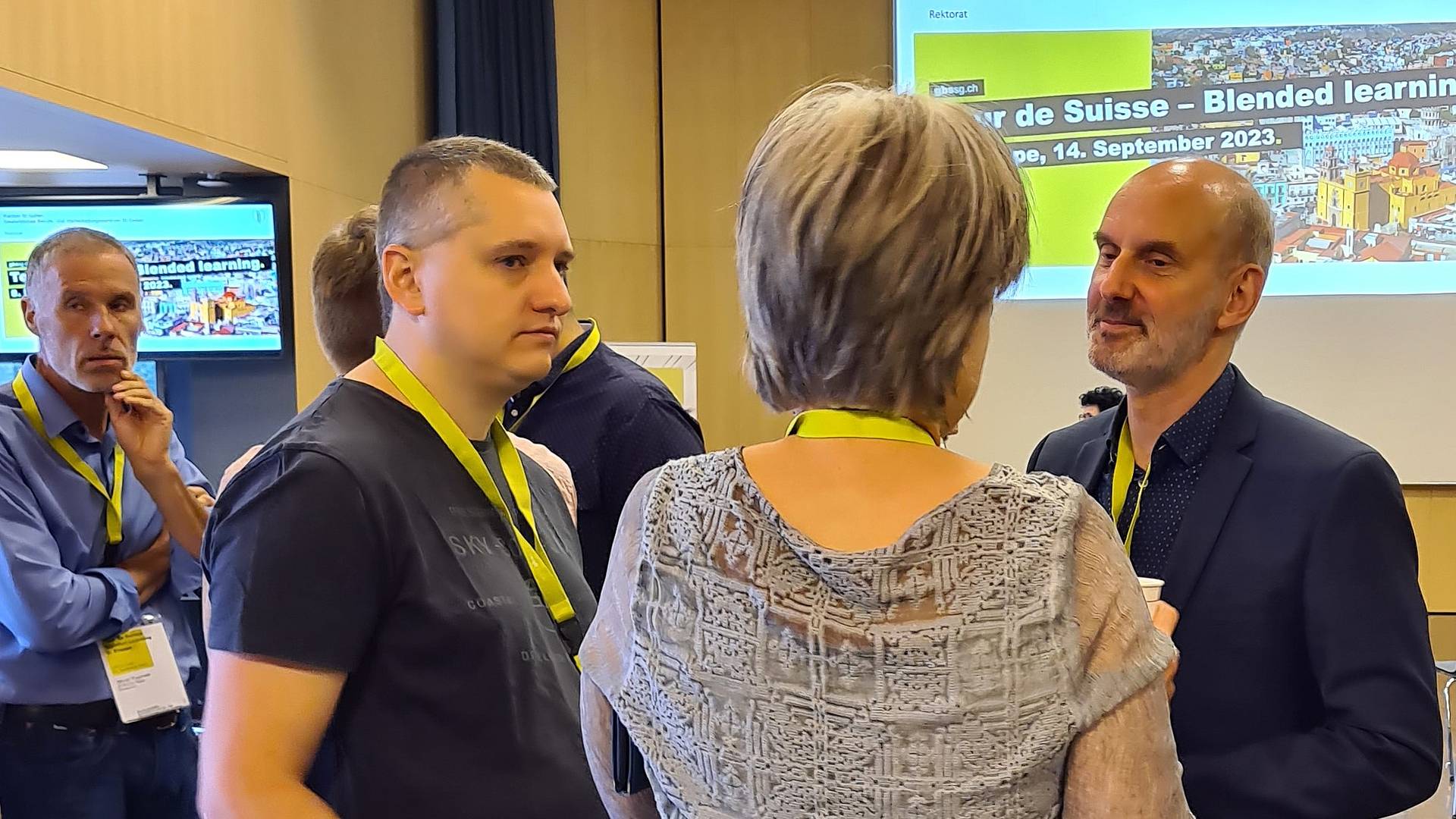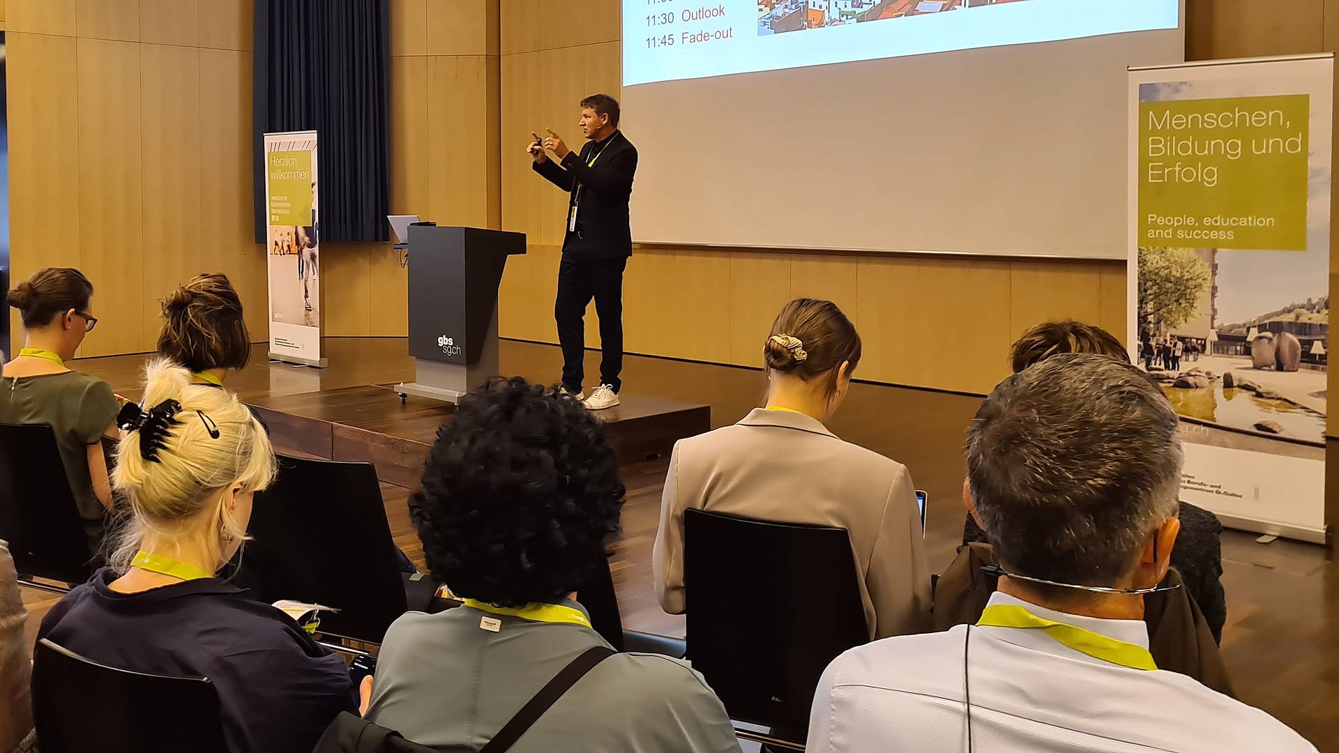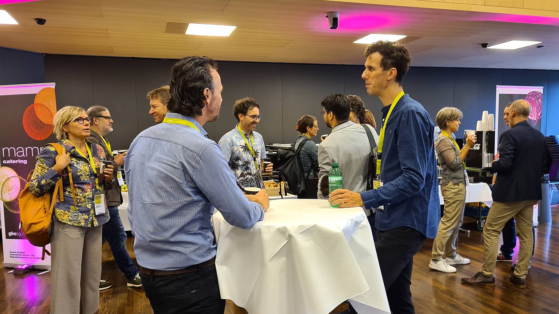 Solche Praxisbeispiele wurden auch an den Mini-Workshops mit den GBS-Lehrpersonen genannt, die passenderweise in den modernen Lernräumen der Schule für Gestaltung St.Gallen stattfanden. In der Arena berichtete Jan Sahner darüber, wie die neue BM2-flex gestartet ist. An den sogenannten Marktständen zeigte Heiner Gabele auf, wie in den Räumlichkeiten der Baukaderschule St.Gallen derzeit ein offenes Raumkonzept umgesetzt wird. Im gläsernen Raum mit dem Namen Aquarium informierten Sandro Kappeler und Jasmin Fässler über den flexiblen Mathematik-Unterricht für die MEM-Berufen.