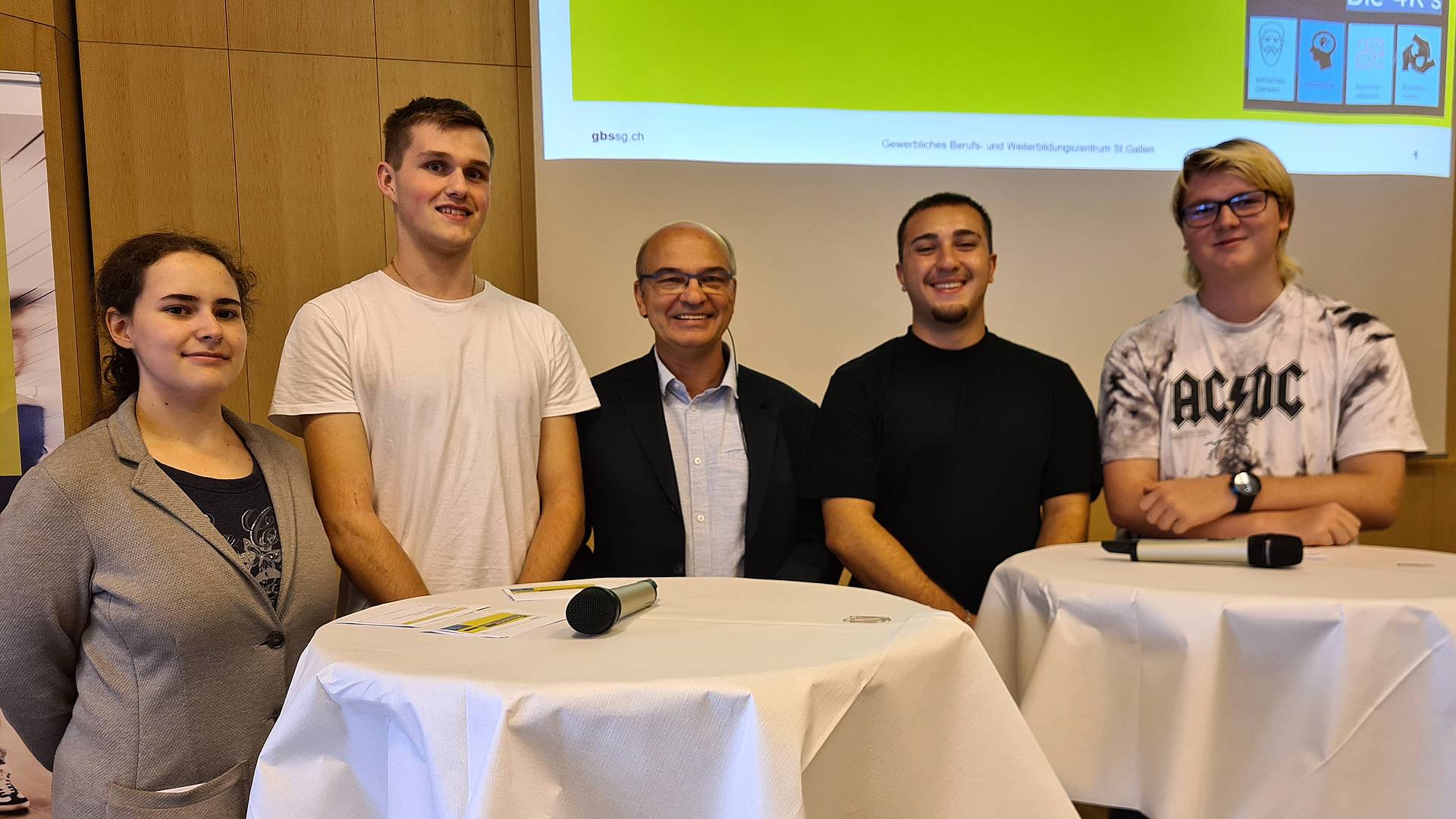 Am achten Etappenort, dem GBS St.Gallen, setzten sich die Teilnehmenden sinngemäss gleich selbst aufs Velo. Der LED-Tunnel der Schule der Gestaltung St.Gallen wurde so bespielt, dass er Ausschnitte von der diesjährigen Tour de Suisse der Männer und Frauen zeigte. Und Rektor Daniel Kehl stieg mit der Frage ein: «Welche Stadt wäre deine Schule, wenn sie ein Etappenhalt wäre und die Tour de Suisse weltweit unterwegs wäre?» Das GBS St.Gallen hat die Antwort für sich bereits gefunden: Meciko City.