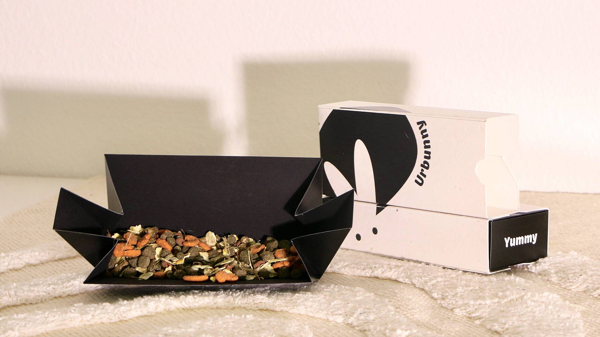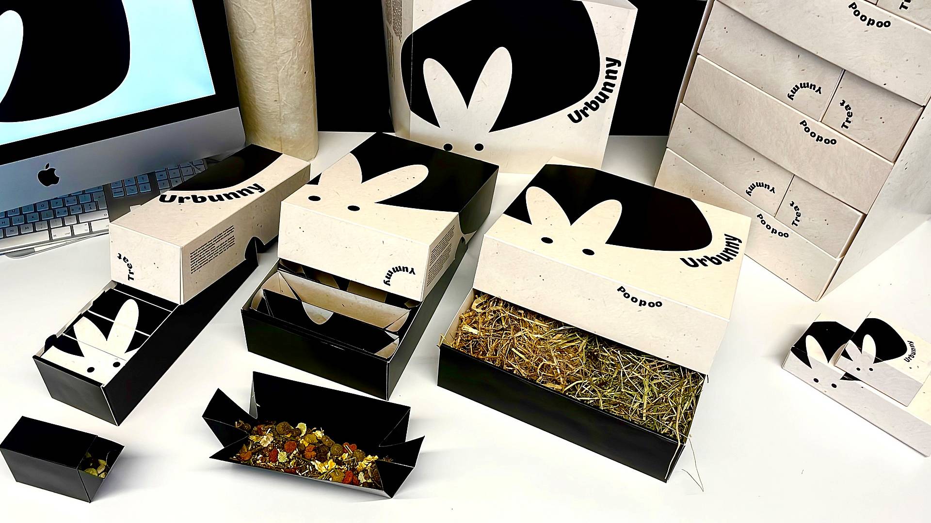 Der angedachte Brand ist auf den Namen Urbunny getauft. Dessen Zielgruppe sind städtische Besitzer*innen von Kaninchen, die über keine Auslaufmöglichkeiten im Garten oder auf einer Terrasse verfügen. Zwei Qualipet-Filialen zeigen sich offen, Urbunny temporär ins Sortiment aufzunehmen. «Der Kontakt kam während meiner Recherche zustande. Die Boxen könnten als Geschenk für die Qualipet-Kundschaft mit einem Hasen mitgegeben werden.» Ob Nadine die Arbeit bis zur Serienproduktion weiterverfolgt, lässt sie offen. Vom Hanf-Karton kann sie sich fürs Erste eine 500er Packung liefern lassen.
