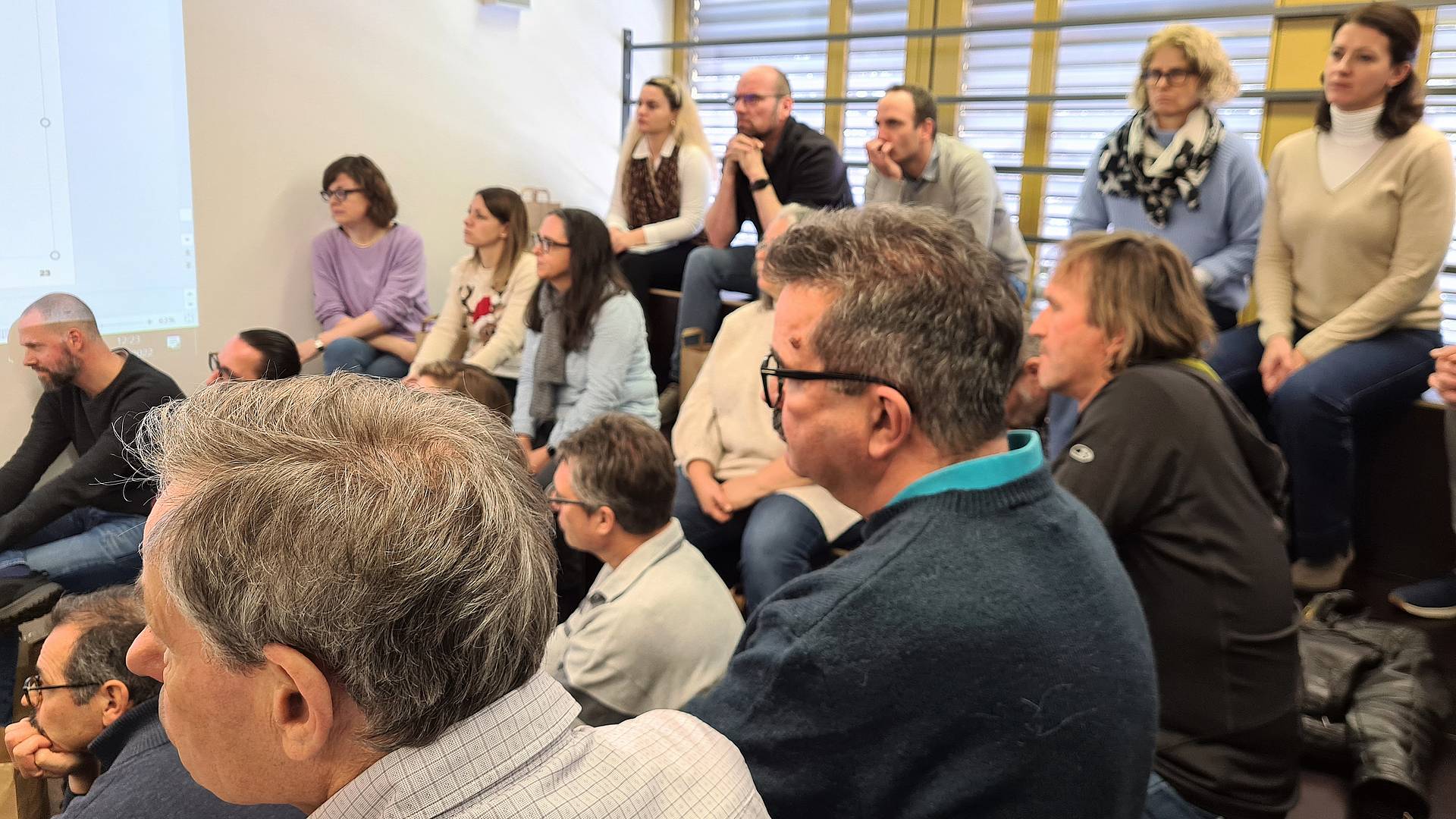 Der Magen knurrt. Während die leckeren Mampf-Sandwiches auf der ersten Folie der Präsentation den Hunger anregen, stillt das Lunchpaket vom hauseigenen Restaurant den Appetit rechtzeitig. Über 30 Lehrpersonen der GBS-Abteilung Technische Berufe trafen sich über Mittag in der Lernlandschaft H.414. Es wurde über die Unterrichtsform Begleitetes Selbstorganisiertes Lernen informiert und darüber diskutiert.