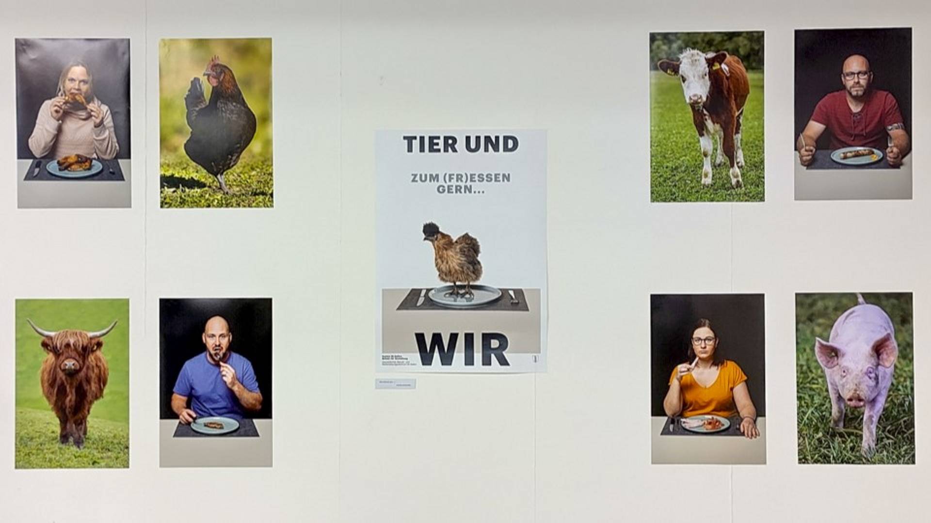 Das vorgegebene Thema der Semesterarbeit «Tier und Wir» interessierte Jolanda Aschwanden primär aus der Sicht des Tierschutzes. Ihre Ursprungsidee war es, Bilder aus einer Massentierhaltung zu zeigen. «Aber solche Aufnahmen kennt man schon und will man nicht sehen. Deshalb habe ich mich dafür entschieden, das Tier in seiner Würde als schönes Porträt zu zeigen.» Ihre Semesterarbeit ist eine Gegenüberstellung. Ein herziges Kälbchen ist zum Beispiel gleich neben einer Person zu sehen, welche eine Kalbsbratwurst verspeisen will. Die Diskussionen mit den anderen Studenten und der Lehrgangsleitung hätten sehr bei der Auswahl der finalen Bilder für das Projekt geholfen.