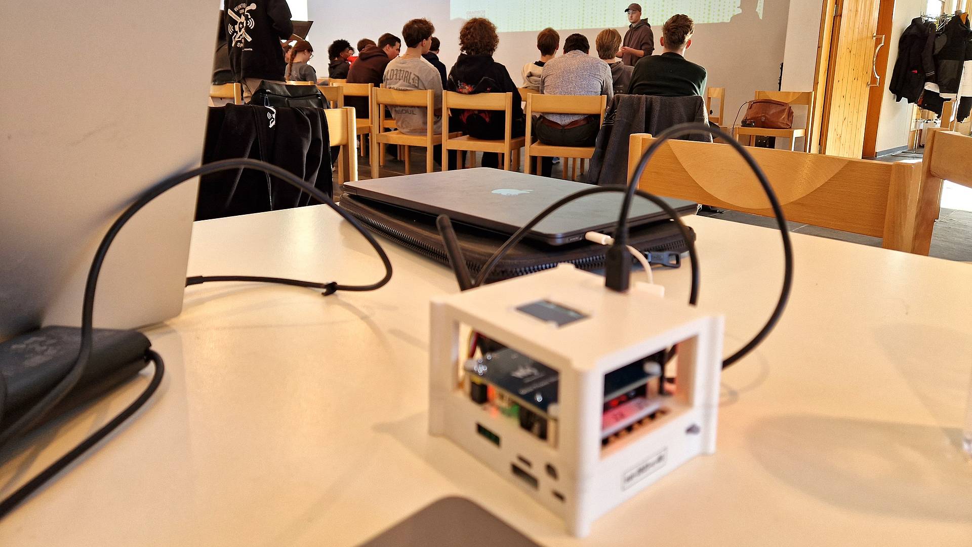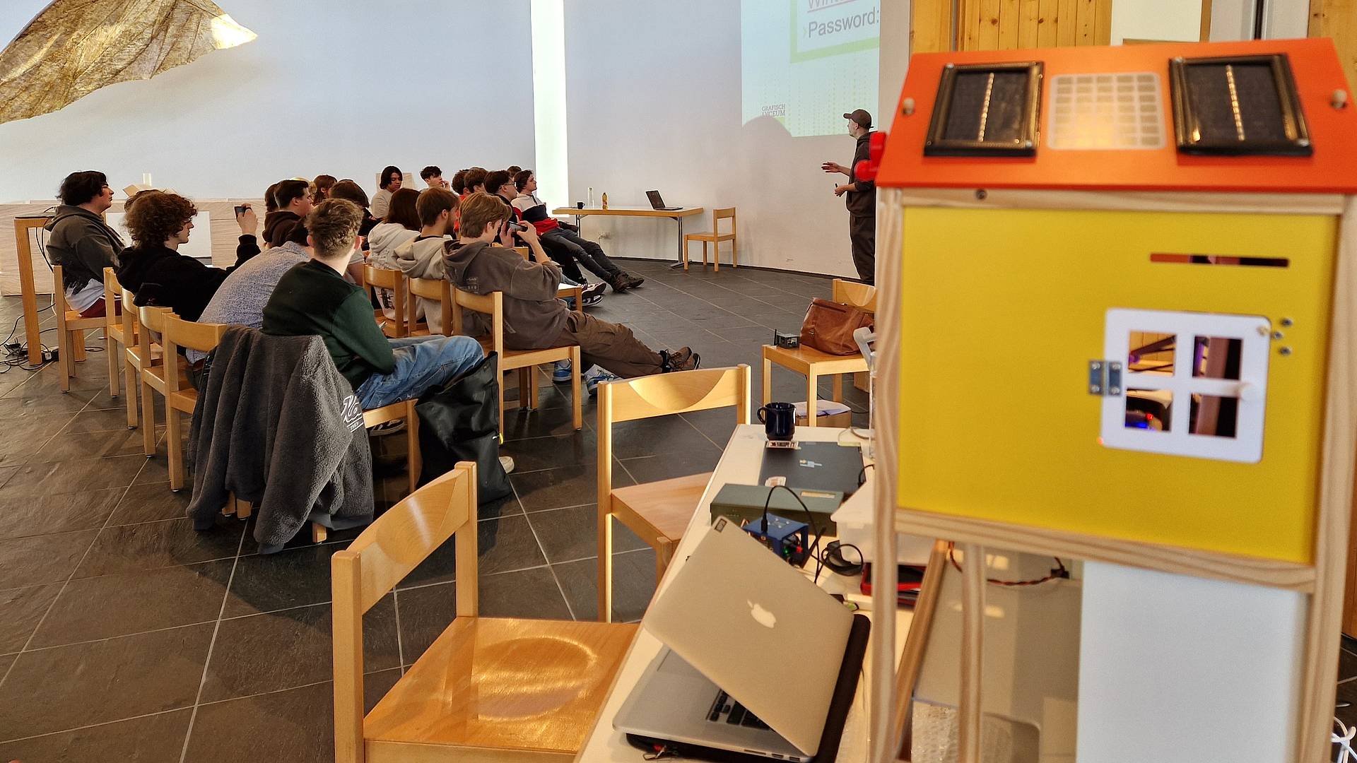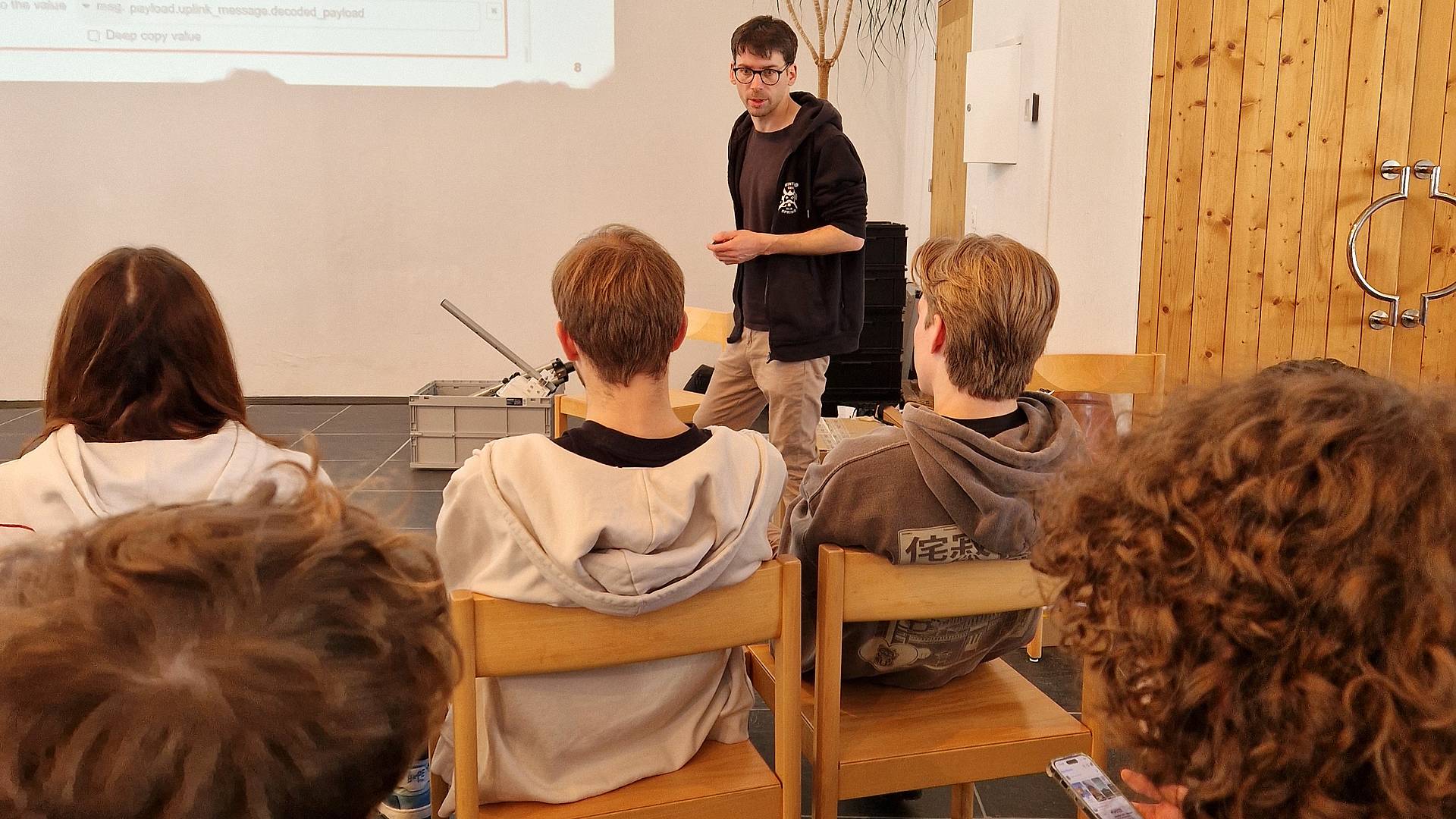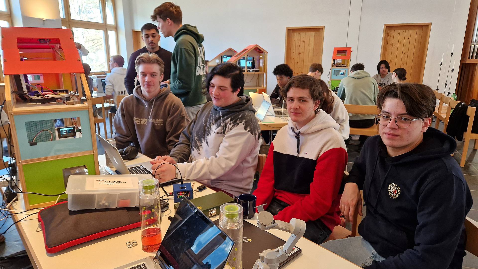 Ist der Auftrag jetzt besser verständlicher? Grafikerin Lisa nimmt an der «WinterSpring»-Projektwoche im Kirchgemeindehaus in Savognin teil und sagt: «Für mich ist aus technischer Sicht alles neu, spannend und gleichzeitig verwirrend. Bis jetzt haben wir aber dank gegenseitiger Unterstützung alles hinbekommen.» Die Teilnehmenden lernen in gemischten Teams aus Lernenden des Graphic Lyceum Rotterdam und Lernenden der Technischen Abteilung sowie der Schule für Gestaltung des GBS St.Gallen, wie man IoT-Daten sammelt, diese bearbeitet und visualisiert.