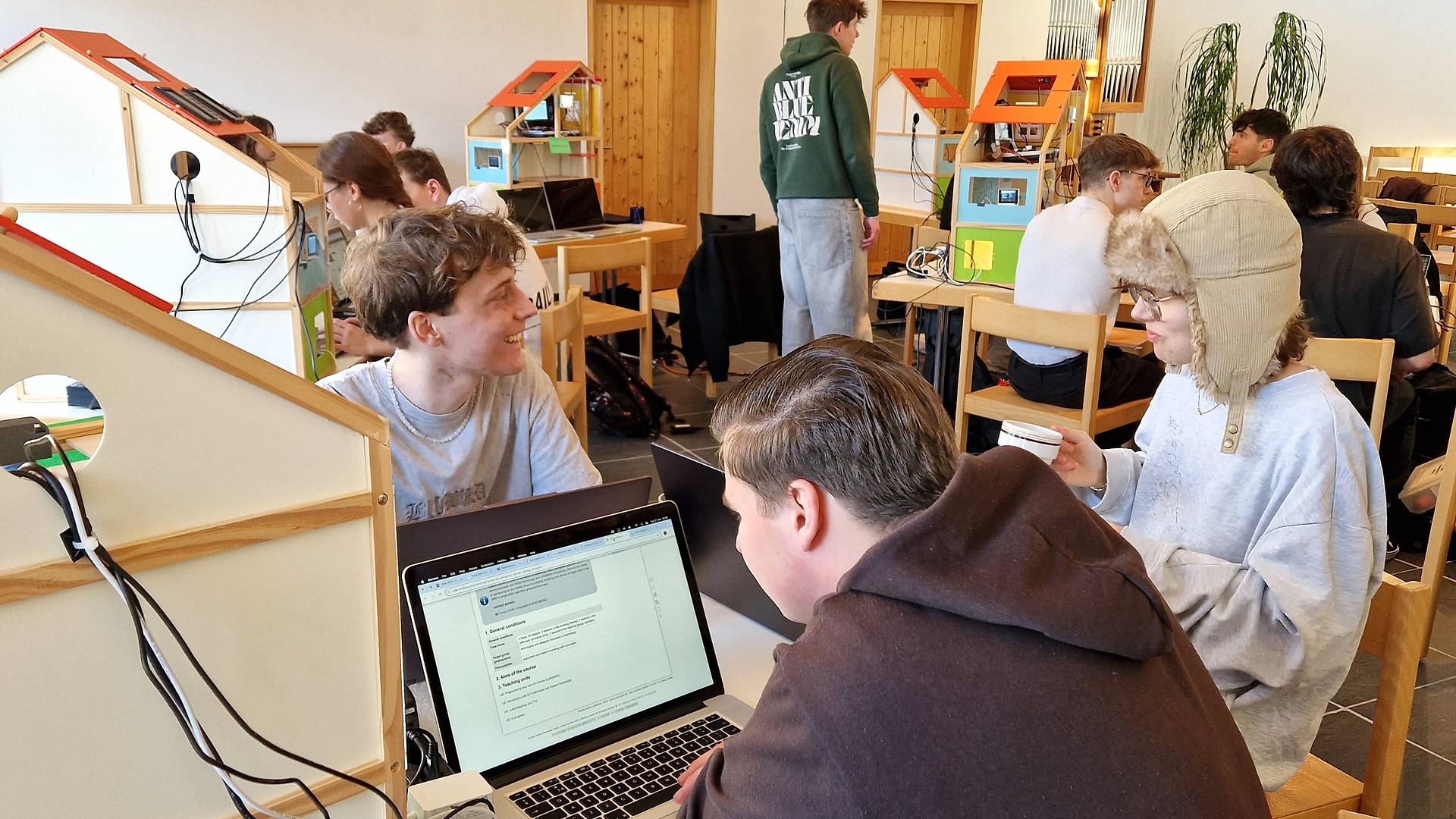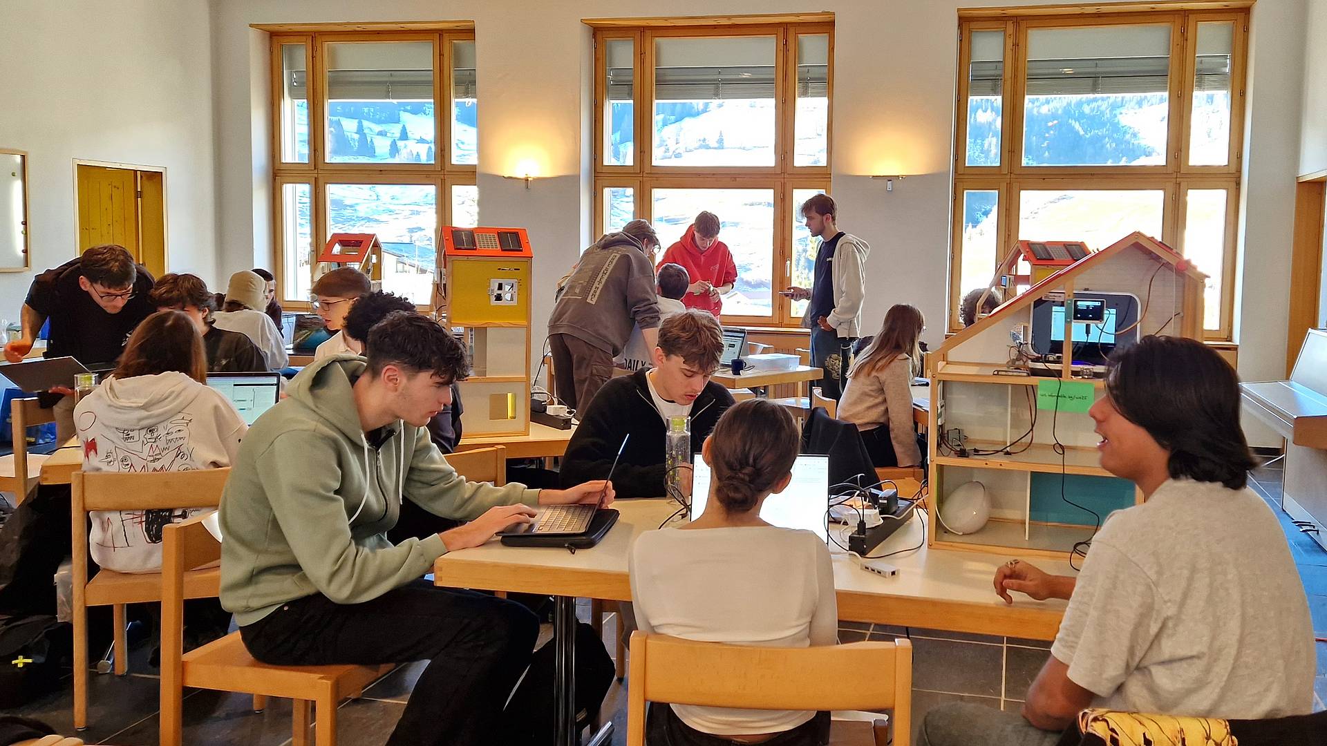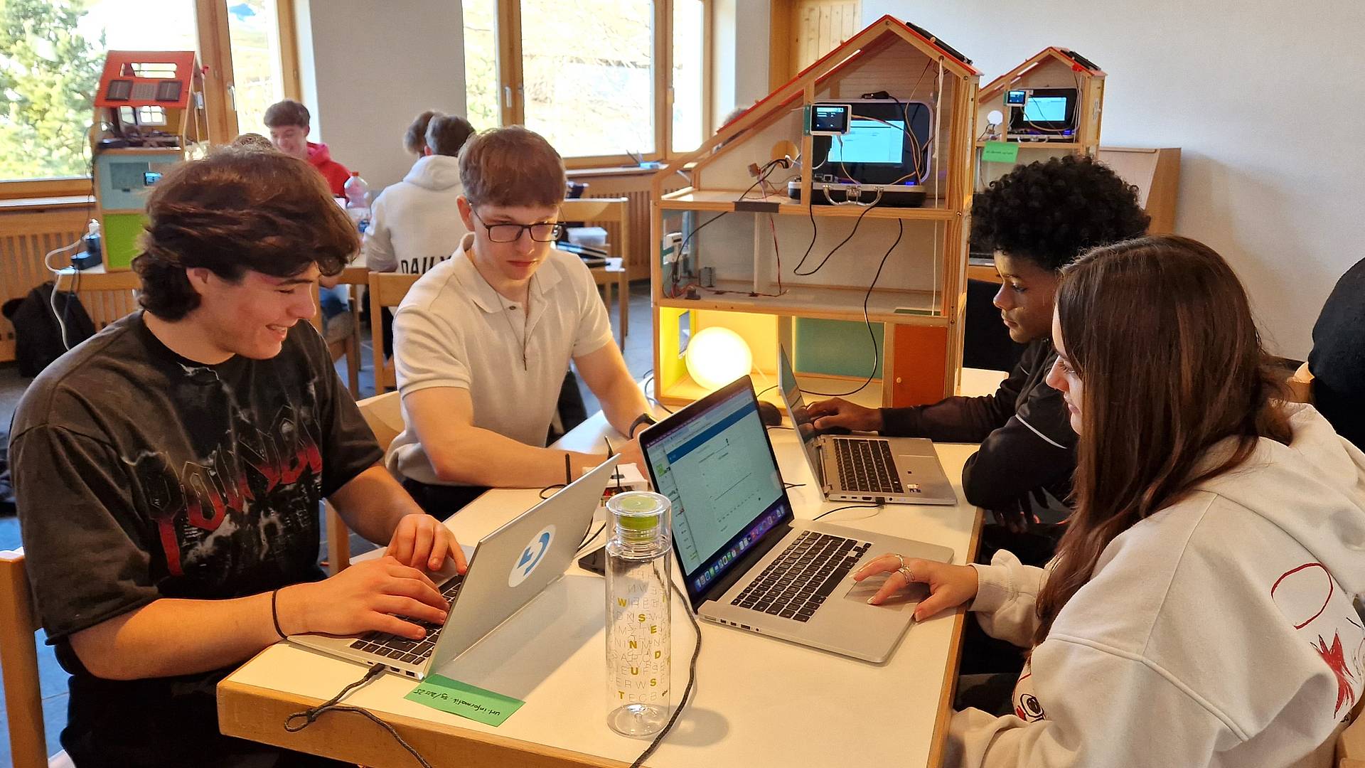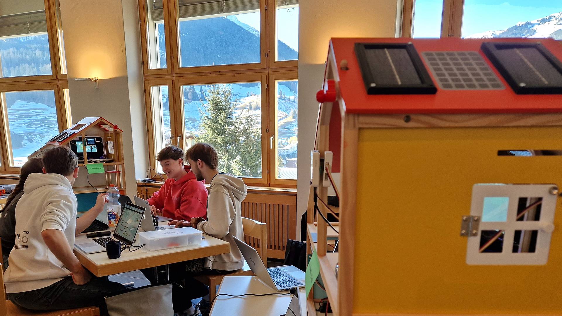 Sowohl hier in Savognin als auch in Rotterdam tauchen die Teilnehmenden in Workshops, Gastvorträge und praktische Aktivitäten ein, die ihre individuellen Stärken und Perspektiven miteinander verbinden. Eine Gruppe entwickelte in Savognin zum Beispiel ein Dashboard, das die Temperatur im Puppenhaus überwacht. Wenn das Fenster zu lange geöffnet ist, wird automatisch eine Mail mit der Erinnerung, das Fenster zu schliessen, verschickt. Im darauffolgenden Schritt nahmen die Teilnehmenden den IoT-Würfel mit auf die Skipiste und visualisierten die Messpunkte auf einer Karte.