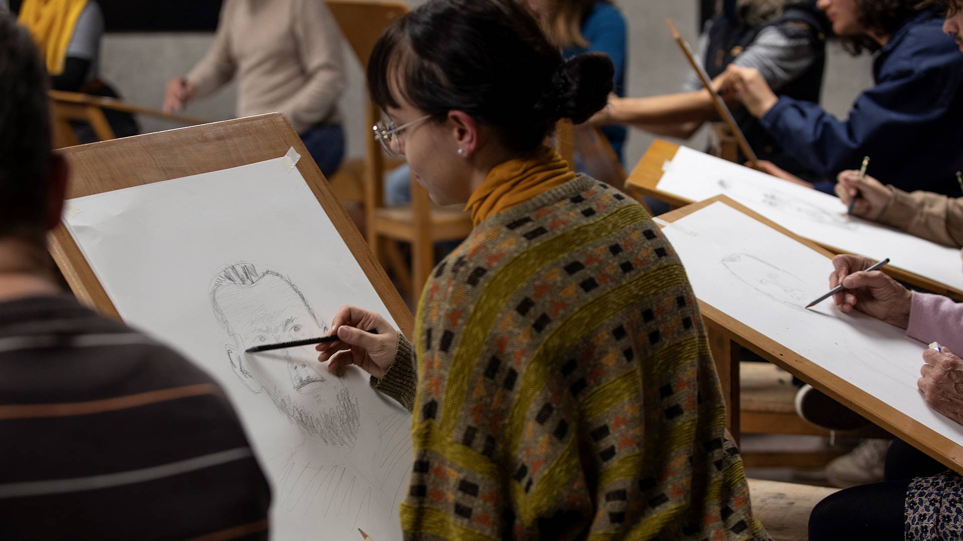 Karl Fürer gehört zum Gründungs-Team der ersten Zeichennacht. Bei ihm im Portrait-Zeichnen gehe es darum, sowohl das Auge als auch die Hand zu trainieren. Er sagt: «Die Hand zeichnet das, was das Auge sieht. Wie bei einem Klavierspieler trainierst du immer wieder, damit das Auge die Proportionen nicht nur detailliert wahrnimmt, sondern sie auch in die Hand überträgt. Dieser Prozess braucht stetige Wiederholung.» Karl Fürer betont, dass Perfektion zwar schön und spannend sei. Das Unperfekte habe häufig aber einen noch stärkeren Reiz.»