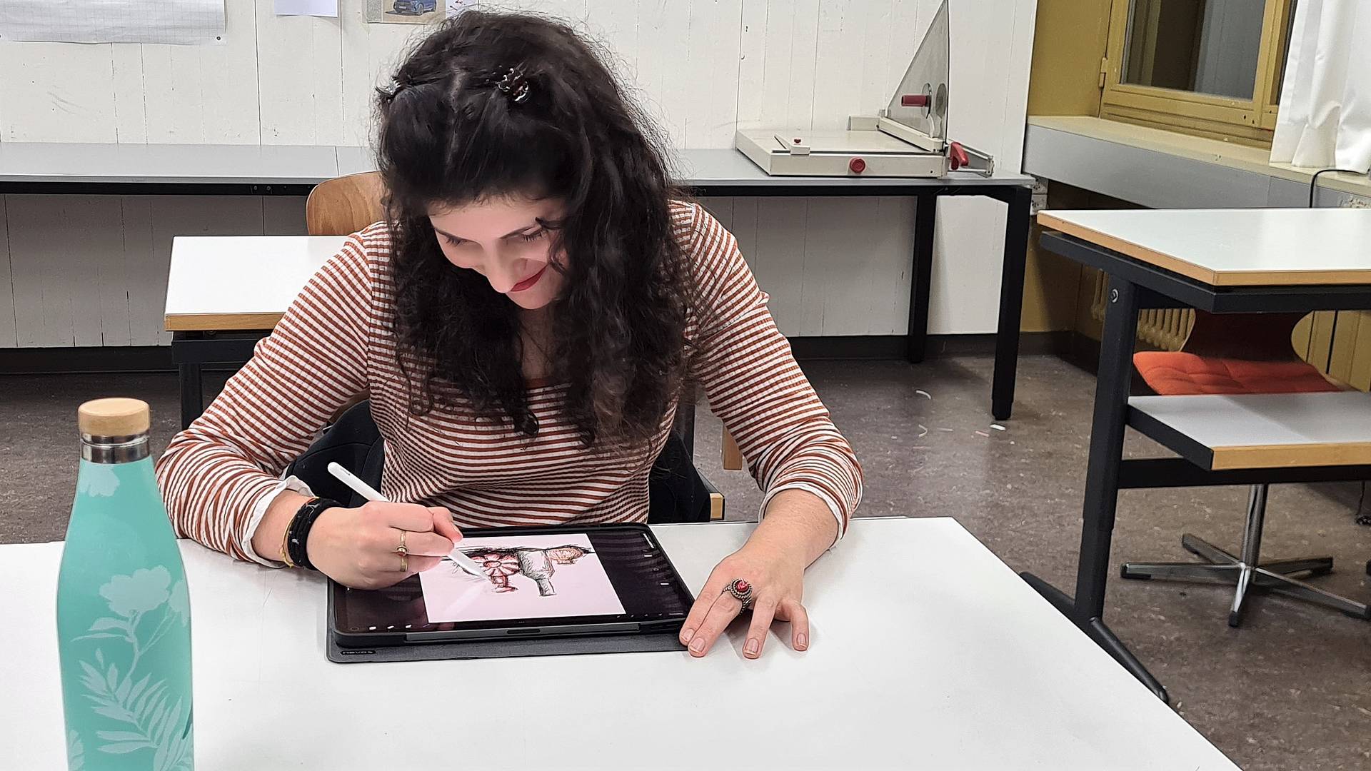 Noch nie waren das digitale Zeichnen und Malen am iPad so reich an Möglichkeiten und in seiner Haptik so nah an der Realität. «Auf dem iPad zu zeichnen, ist eine spezielle, neue Erfahrung», sagt Mona. Sie hat gleich zuerst den Workshop Digital Artist besucht, weil sie in diesem Zimmer schon ein paar Personen kannte. «Zuerst befürchtete ich, dass ich meine Zeichnung lösche, sobald ich mit der Hand den Bildschirm berühre», berichtet Mona. Es sei aber alles flüssig von der Hand gegangen. Und das Endresultat? «Es hat dieselbe Wirkung, wie wenn ich auf Papier gezeichnet hätte.»