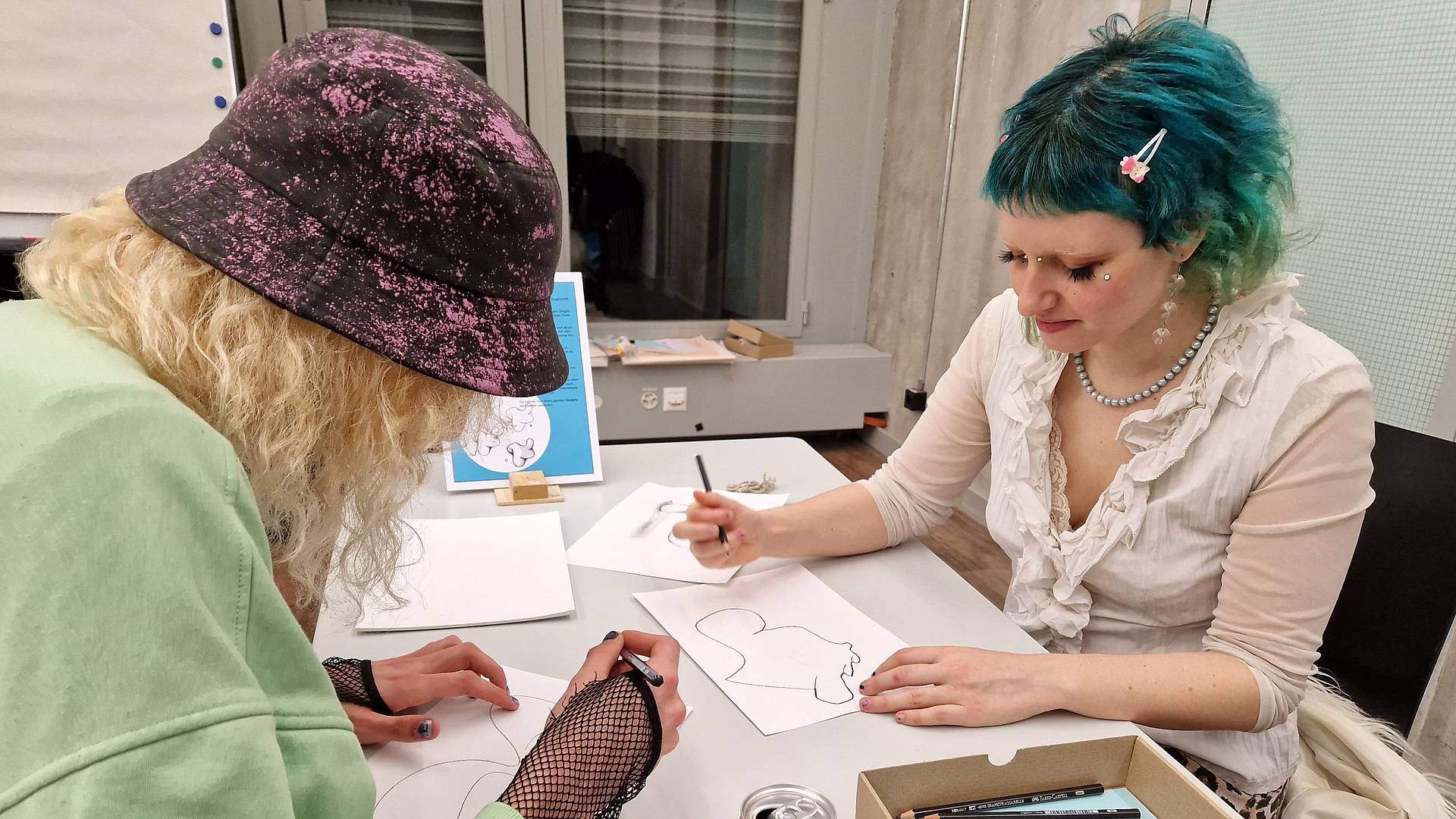 Die Kursleitenden der Schule für Gestaltung St.Gallen geben während der Zeichennacht Einblick in ihre Arbeit und vermitteln in ihren Workshops, dass künstlerisches Schaffen vor allem Freude machen soll. «Beim Zeichnen gibt es kein richtig oder falsch. Es geht darum, den Prozess zu geniessen und Neues auszuprobieren», erklärt etwa Kursleiterin Claudia Züllig.